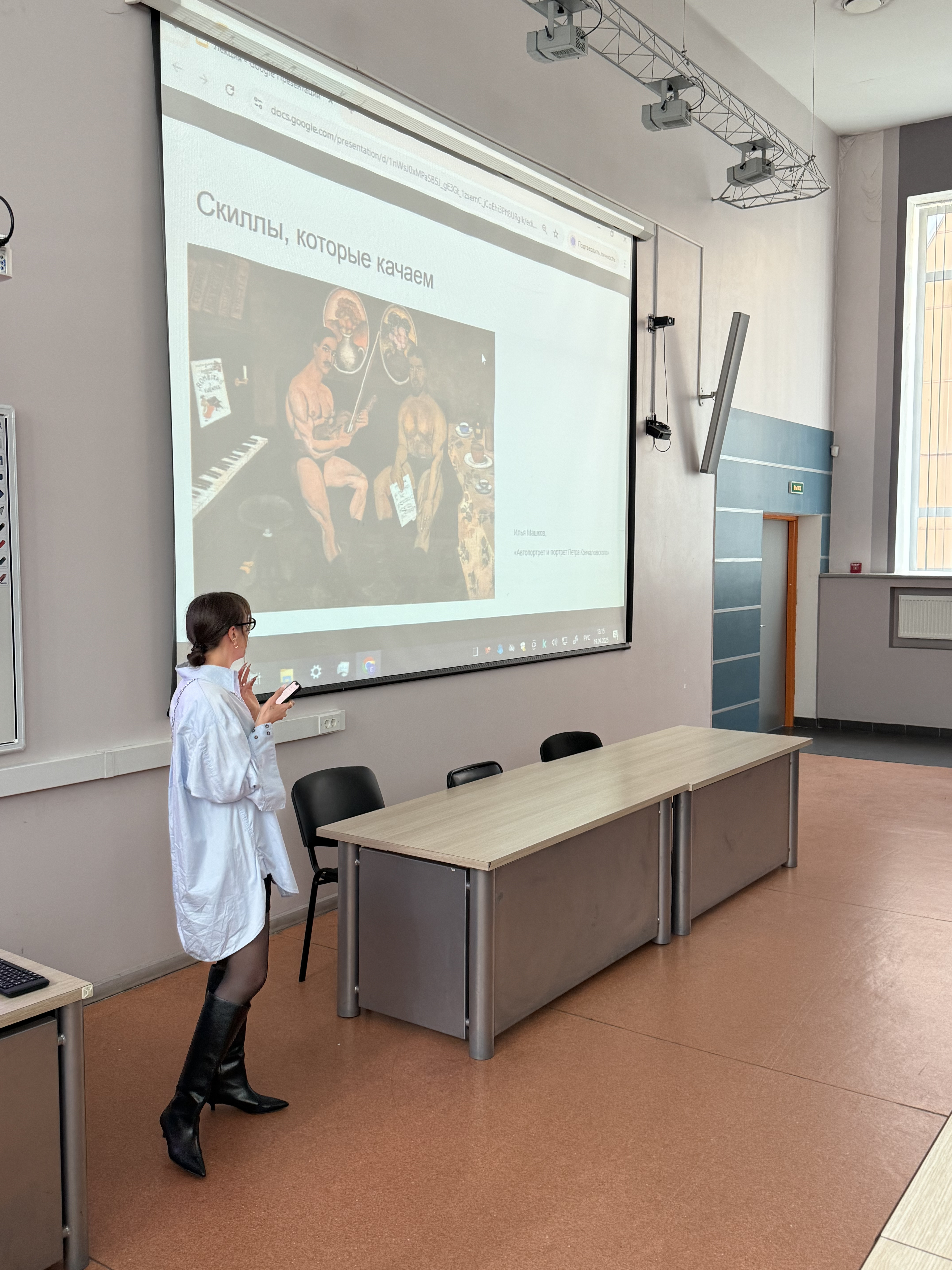 Татьяна поделилась с ребятами теми сторонами профессии, которые часто остаются за кадром. Особый интерес у слушателей вызвали примеры из её профессиональной практики в таких проектах, как beinopen, Собака.ru, Alfa Only (лайфстайл-медиа Альфа-Банка), «Т—Ж», журнал «Москвичка».