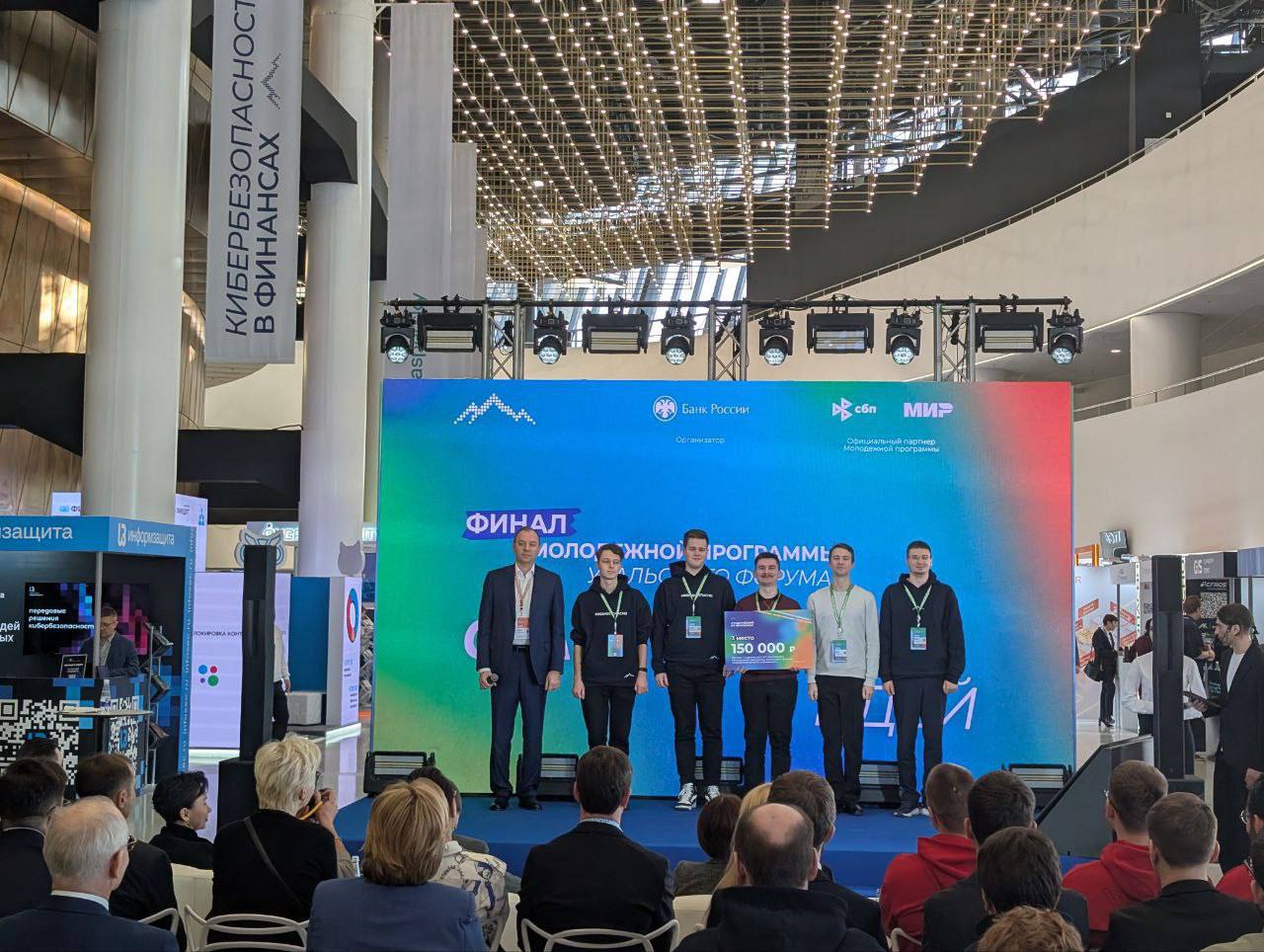 Студенты Санкт-Петербургского университета телекоммуникаций (выпускающая кафедра информационной безопасности компьютерных сетей) заняли 3-е место в финале всероссийского студенческого ИТ-чемпионата в рамках Молодёжной программы Уральского форума «Кибербезопасность в финансах».