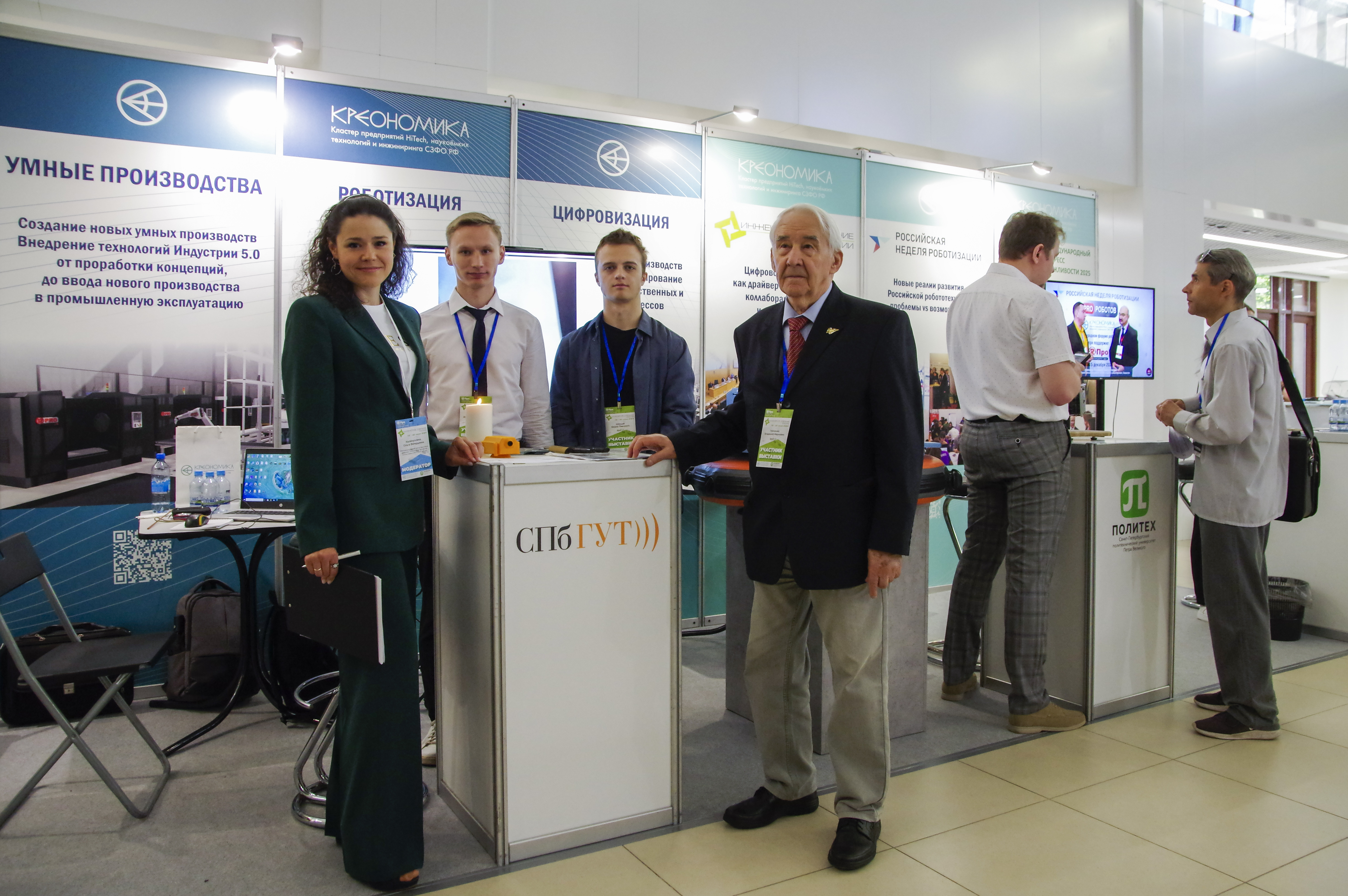 На площадке от СПбГУТ работали: руководитель Центра трансфера цифровых технологий и технологий систем связи Ольга Кожуховская, к. э. н., менеджер проектов Центра Ольга Калимуллина, к. т. н, ведущий инженер кафедры радиосистем и обработки сигналов Владимир Тимченко, студенты Федор Швецов (РТС), Дмитрий Барабанщиков (ИМ) и Павел Стулин (РТС). «Бончевцы» представили стенд с научной разработкой, а Ольга Кожуховская выступила с докладом на заседании одной из секций.