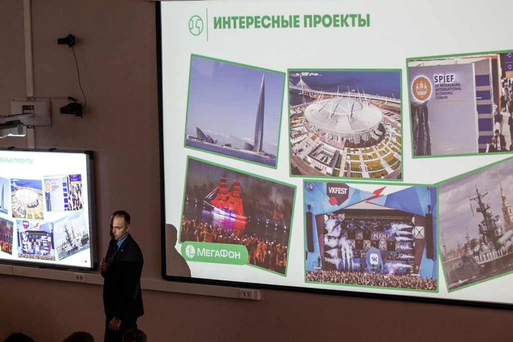 Затем с ребятами пообщались ведущий специалист по подбору персонала Елена Насонова и менеджер по подбору персонала Северо-Запад Илья Муллин. Елена сообщила студентам о возможности прохождения практики в ПАО «МегаФон» и отметила, что в компании можно пройти стажировку и трудоустроиться на открытые позиции.