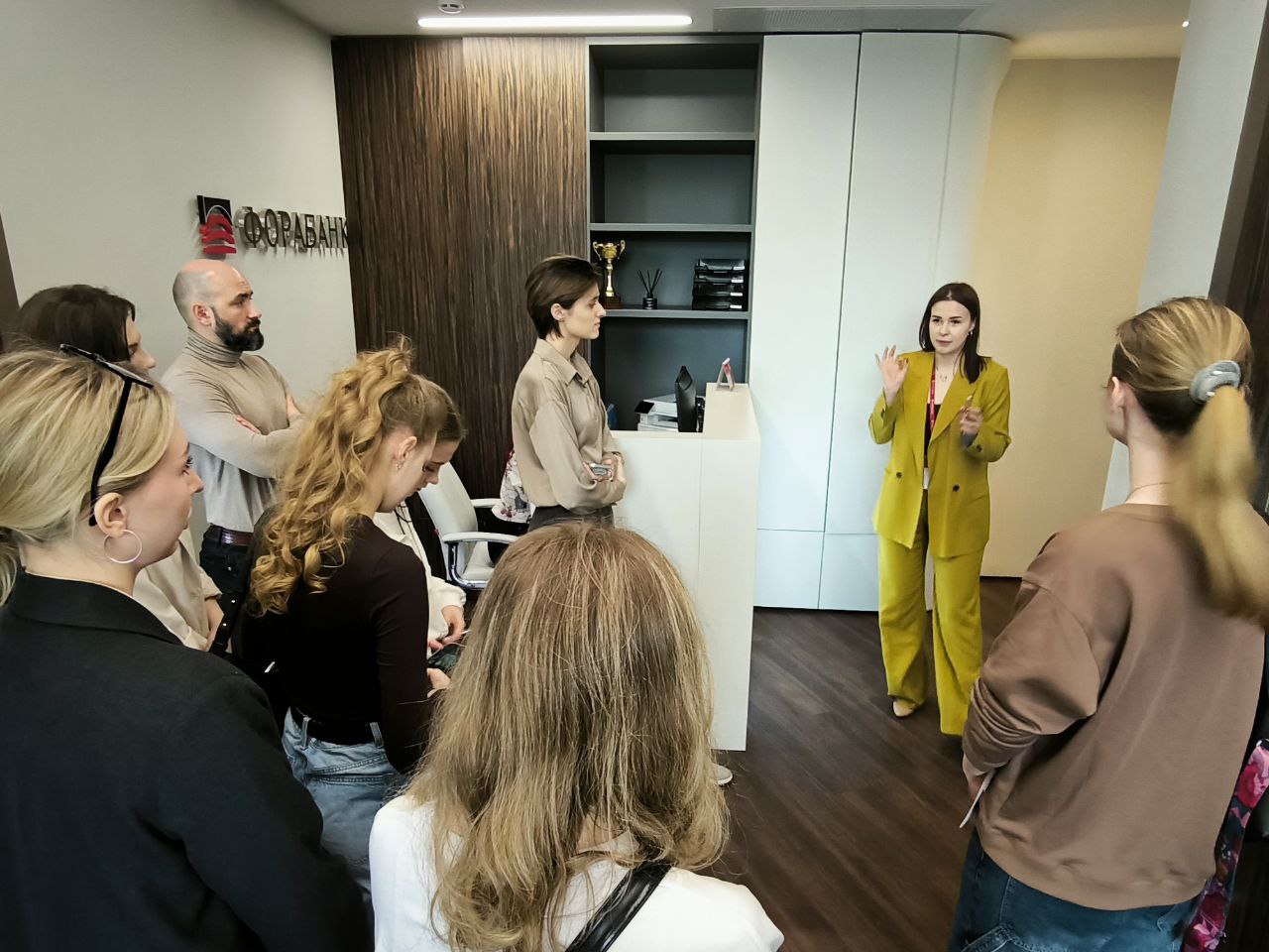 Ведущий менеджер по рекламе и маркетингу Дарина Смирнова провела экскурсию по банку, рассказала о банковском секторе, о задачах, которые стоят перед рекламщиком и маркетологом банка. В конце встречи Дарина Смирнова вручила студентам сувениры.