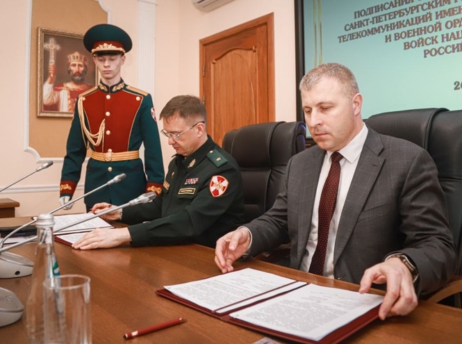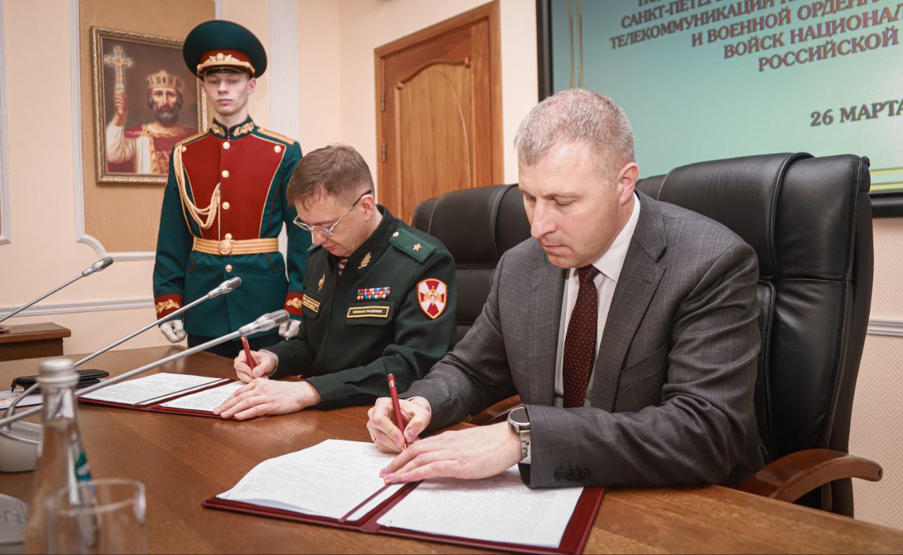 Санкт-Петербургский университет телекоммуникаций и ФГКВОУ ВО «Военная ордена Жукова академия войск национальной гвардии Российской Федерации» договорились о взаимодействии в области науки, образования и воспитания. Соглашение о сотрудничестве подписали ректор СПбГУТ Руслан Киричёк и начальник Академии Росгвардии Андрей Кийко.