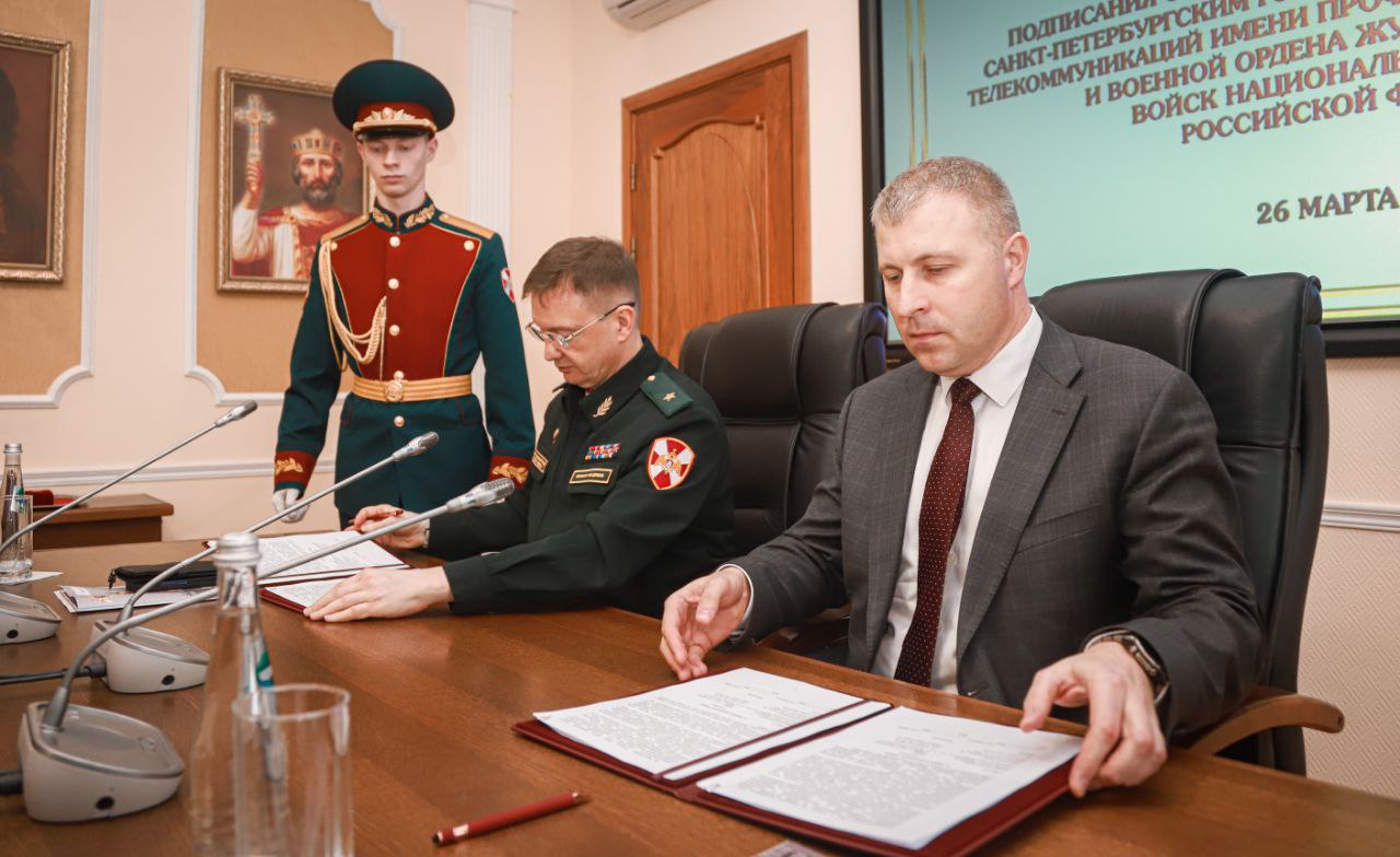 26 марта в Академии Росгвардии состоялось торжественное подписание соглашения о сотрудничестве между СПбГУТ и Академией Росгвардии.