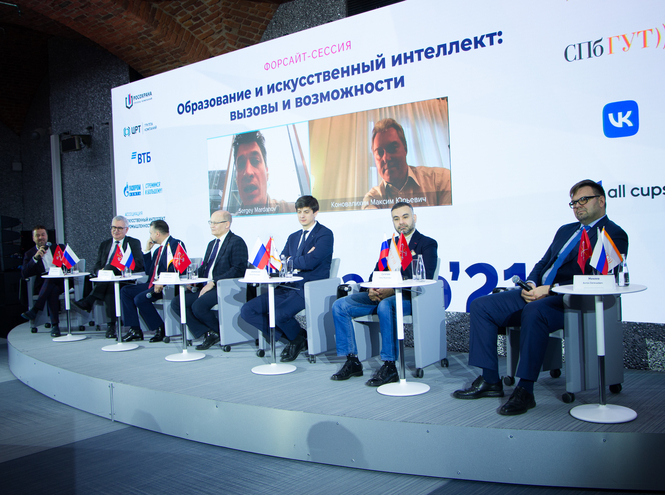Перспективы внедрения новых технологий участники и гости обсудили на форсайт-сессии «Образование и искусственный интеллект: вызовы и возможности». Ее спикерами стали вице-губернатор Санкт-Петербурга Владимир Княгинин, вице-губернатор Санкт-Петербурга Станислав Казарин, ректор СПбГУТ Сергей Бачевский, старший вице-президент, руководитель департамента анализа данных и моделирования ПАО «Банк ВТБ» Максим Коновалихин, директор Ассоциации «Искусственный интеллект в промышленности» Тимур Супатаев, генеральный директор группы компаний ЦРТ Дмитрий Дырмовский, директор по связям с вузами VK Сергей Марданов, руководитель направления разработки цифровых образовательных продуктов Корпоративного университета ПАО «Газпром нефть» Антон Михеев.
