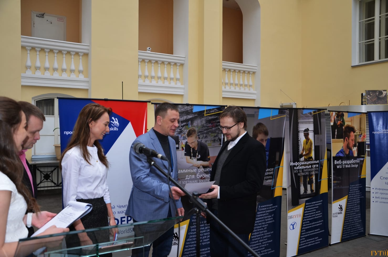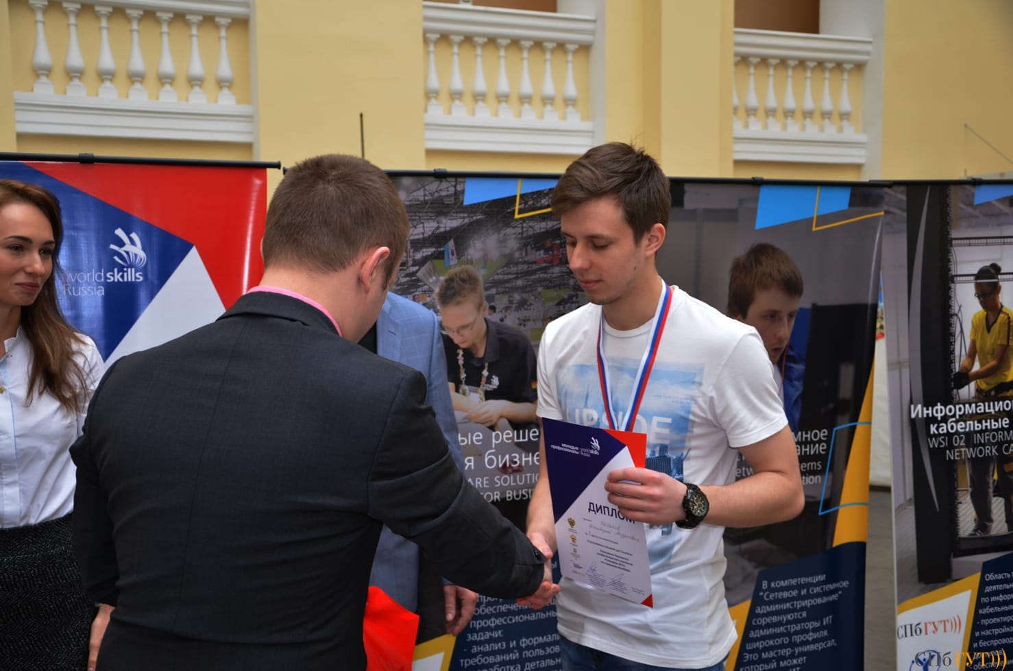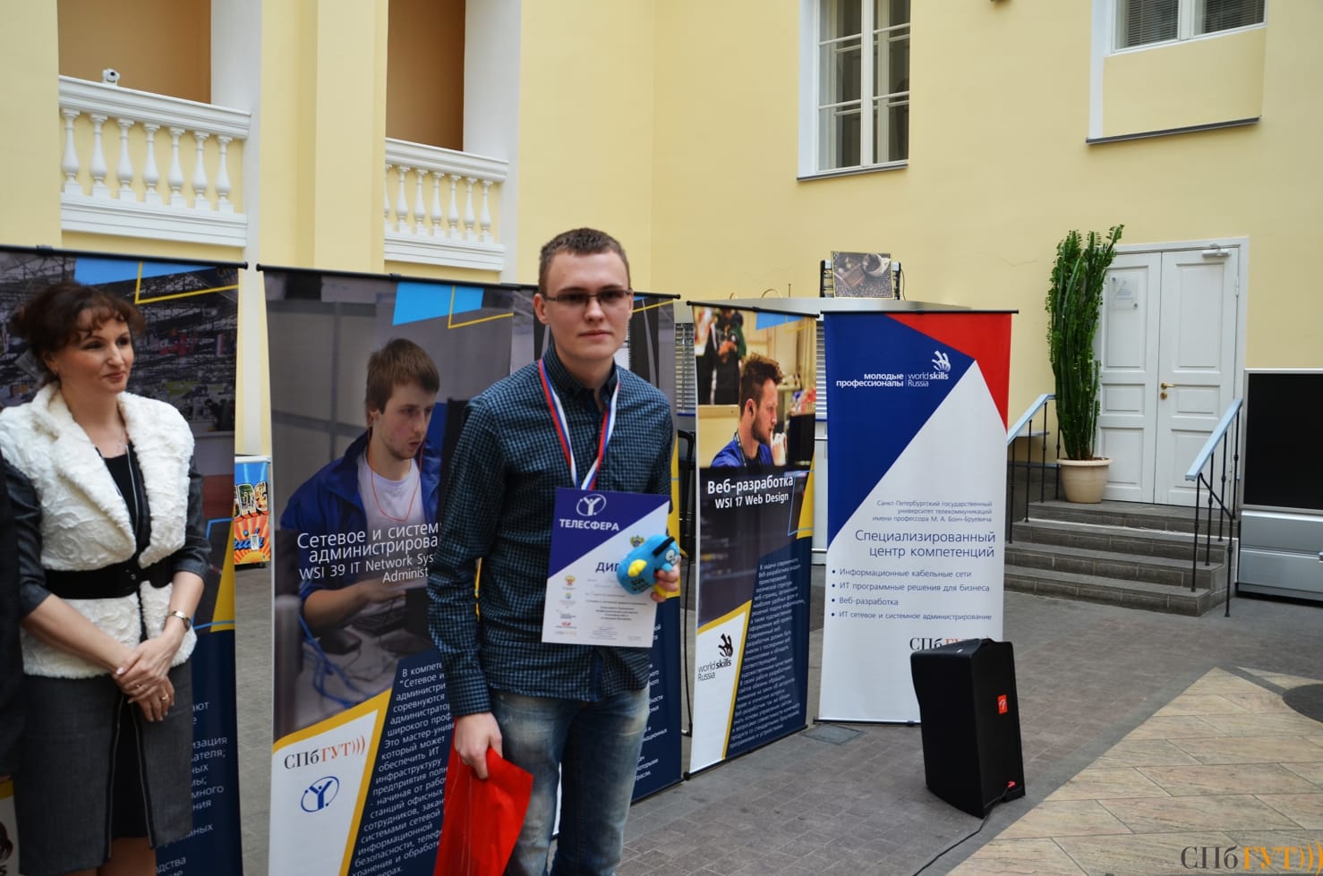С приветственной речью к собравшимся обратился первый проректор–проректор по учебной работе СПбГУТ Георгий Михайлович Машков, который назвал победителями не только призеров, но и всех вышедших в финал участников, пожелав им сохранить соревновательный дух и любовь к профессии. Руководитель Регионального координационного центра «WorldSkills Russia» в Санкт-Петербурге Наталия Евгеньевна Смирнова отметила, что присутствующих в зале студентов можно уже считать молодыми профессионалами.