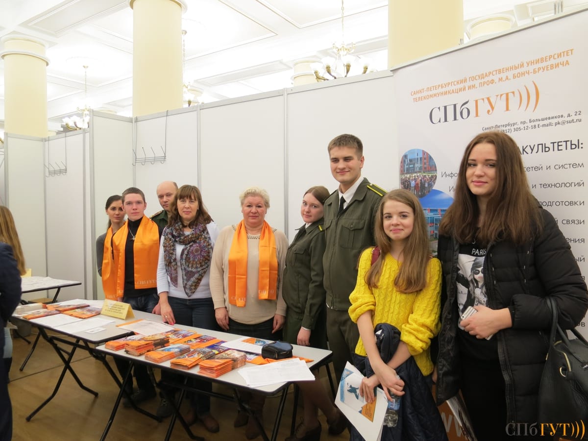 Информационный стенд университета вызвал живой интерес у посетителей выставки – школьников 8-11-х классов и их родителей. На многочисленные вопросы о порядке приема и направлениях подготовки подробно ответили специалисты отдела профориентации и довузовской подготовки, а также представители Института военного образования и факультета ИКСС СПбГУТ. О студенческой жизни и учебе в «Бонче» рассказали студенты факультета ГФ, ИВО и ИКСС, которые также приняли активное участие в выставке.