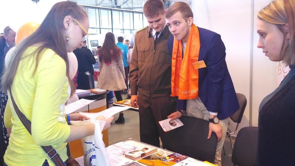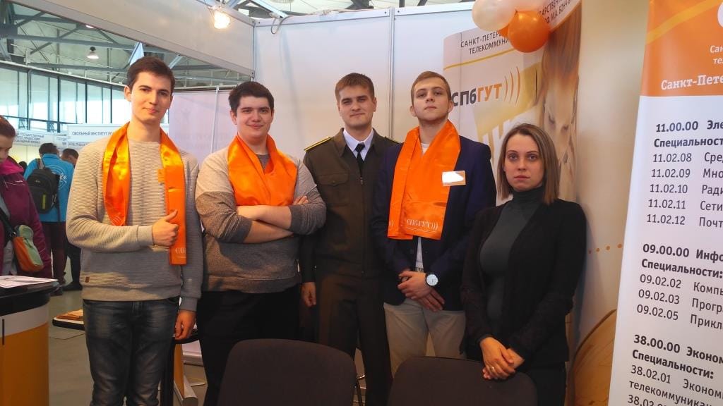 Санкт-Петербургский государственный университет телекоммуникаций им. проф. М.А. Бонч-Бруевича был представлен высшим и средним профессиональным образованием. Активное участие в выставке приняли представители отдела профориентации и довузовской подготовки, студенты и сотрудники факультетов ИКСС, РТС, ИСиТ, ФФП, ФЭУ, ИВО, а также представители колледжа СПбКТ. Они познакомили посетителей выставки с актуальной информацией по поступлению на 2017 год, с количеством бюджетных мест и статистикой проходных баллов по прошлым годам, а также рассказали о том, как получить дополнительные баллы, участвуя в проводимых СПбГУТ проектах.
