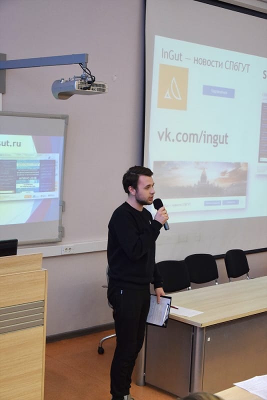 Представители студенческого совета в своем выступлении презентовали многочисленные студенческие мероприятия, инициативы и конкурсы. Рассказали о насыщенной студенческой жизни СПбГУТ - это спортивные соревнования и секции, институты кураторства и волонтерства, творческие конкурсы и межфакультетские состязания.