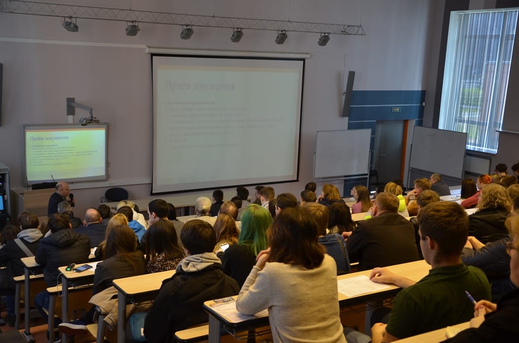 Несмотря на то, что этот общеуниверситетский ДОД был уже 6-ой по счету в 2017/2018 учебном году, беспрецедентно большое количество поступающих и их родителей посетило наш вуз. Свыше 250 участников, из которых половина поступающих имеют среднее профессиональное образование, порядка 60 человек, закончили сторонние колледжи и, конечно же, ученики 8-11 классов и СПбКТ. География гостей также была широкой, это и Санкт-Петербург и Ленинградская область, Псков, Выборг, Великий Новгород и город Луга, северо-запад региона и даже Тульская область.