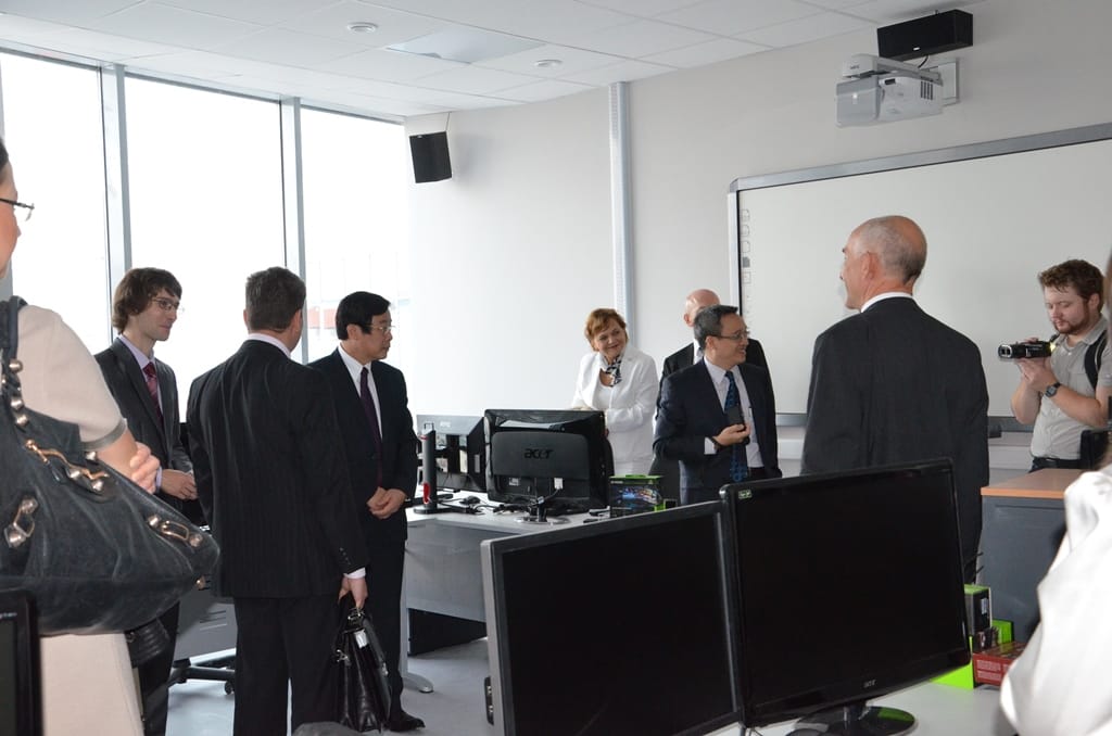 Также в этом году наш вуз посетила делегация из Вьетнама во главе с Министром связи и информатизации Нгуен Бак Шоном, который совместно с ректором СПбГУТ Сергеем Викторовичем Бачевским поучаствовал в торжественном открытии новой лаборатории силовой электроники при кафедре радиопередающих устройств и средств подвижной связи (РПдУ и СПС).