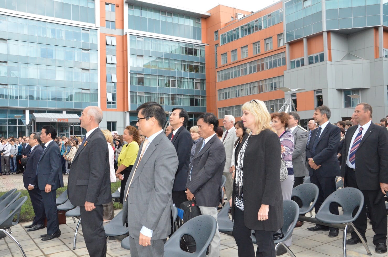 2 сентября в СПбГУТ собрались студенты, преподаватели, сотрудники, партнеры и почетные гости университета, среди которых были: Шалыто И.А., заместитель председателя Комитета по промышленной политике и инновациям Санкт-Петербурга, Бушихин И.В., начальник отдела телекоммуникационного обеспечения и развития отрасли связи Комитета по информатизации и связи, Серов К.Н., глава администрации Невского района СПб, Спиридонова Н.Г., начальник отдела образования Невского района СПб, Никифоров И.С., генеральный директор ЗАО "Бизнес Компьютер Центр", Бакаютова Л.Н., директор Центрального музея связи им. А.С. Попова, Довгалева Е.А., председатель Территориальной СПб и ЛО организации Профсоюза работников связи, Струлев К.И., директор по эксплуатации сети СЗФ ОАО «МегаФон», Кайдак А.В., Генеральный директор ОАО "Гипросвязь"(СПб) и другие.