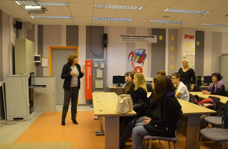 7 ноября СПбГУТ посетила большая группа учащихся из г. Ковдор, экскурсию для которых провели сотрудники ЦДП и декан факультета ИКСС Л.Б. Бузюкова.