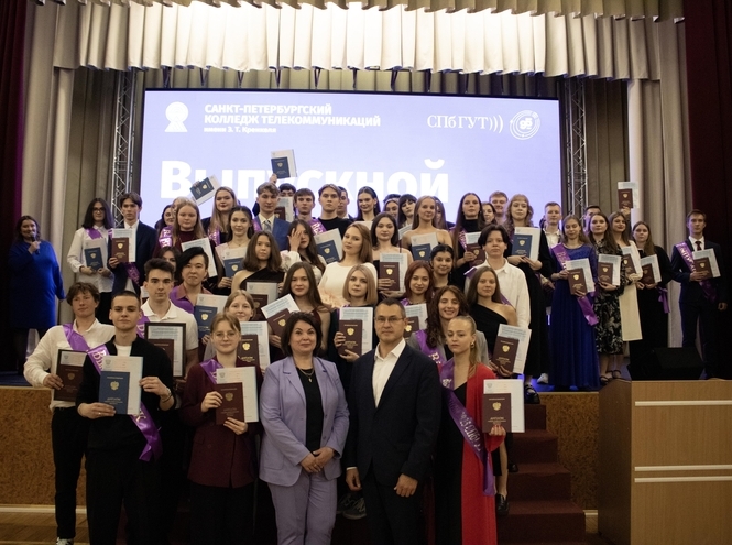 Санкт-Петербургский колледж телекоммуникаций им. Э. Т. Кренкеля 1 июля в актовом зале университета провёл церемонию вручения дипломов выпускникам. Летний выпуск колледжа составил 182 человека, 68 из них – отличники.