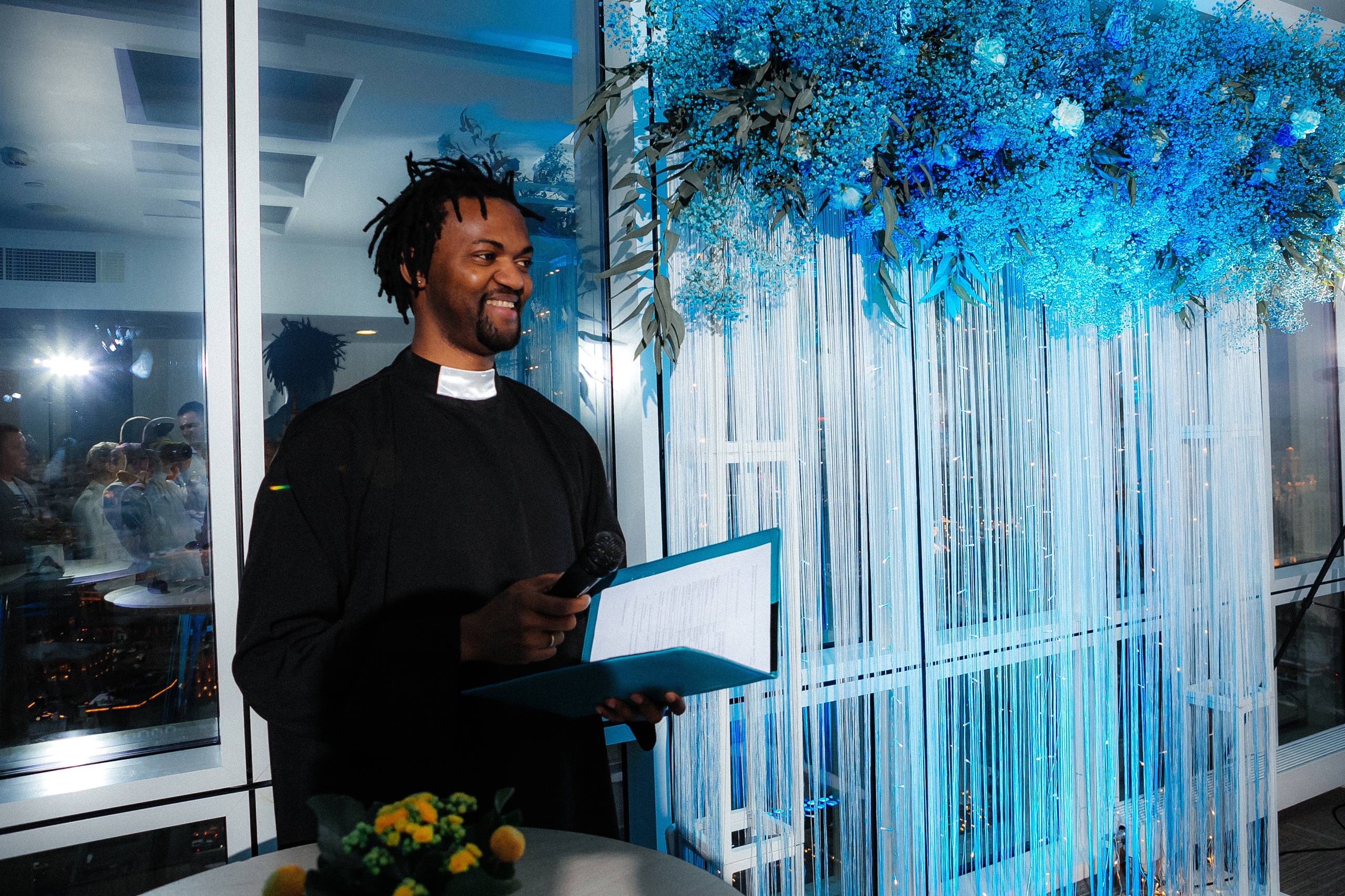 Сегодня о Тео не слышал только ленивый: он проводит свадьбы, выпускные и корпоративы в обеих столицах, ныряет в прорубь на Крещение и объединяет друзей в креативной команде «Черные люди в черном».