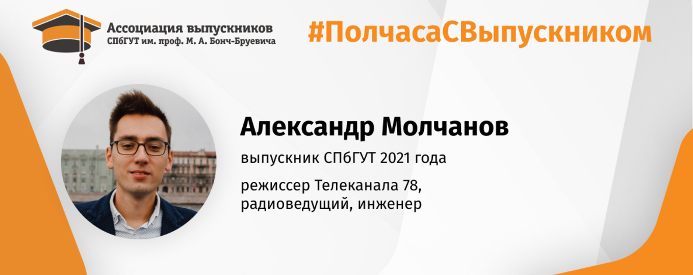 В преддверии Дня радио, который отмечается 7 мая, гостем проекта «Полчаса с выпускником» стал Александр Молчанов, руководитель «Радио Бонч» в Медиацентре СПбГУТ, наш выпускник 2021 года.