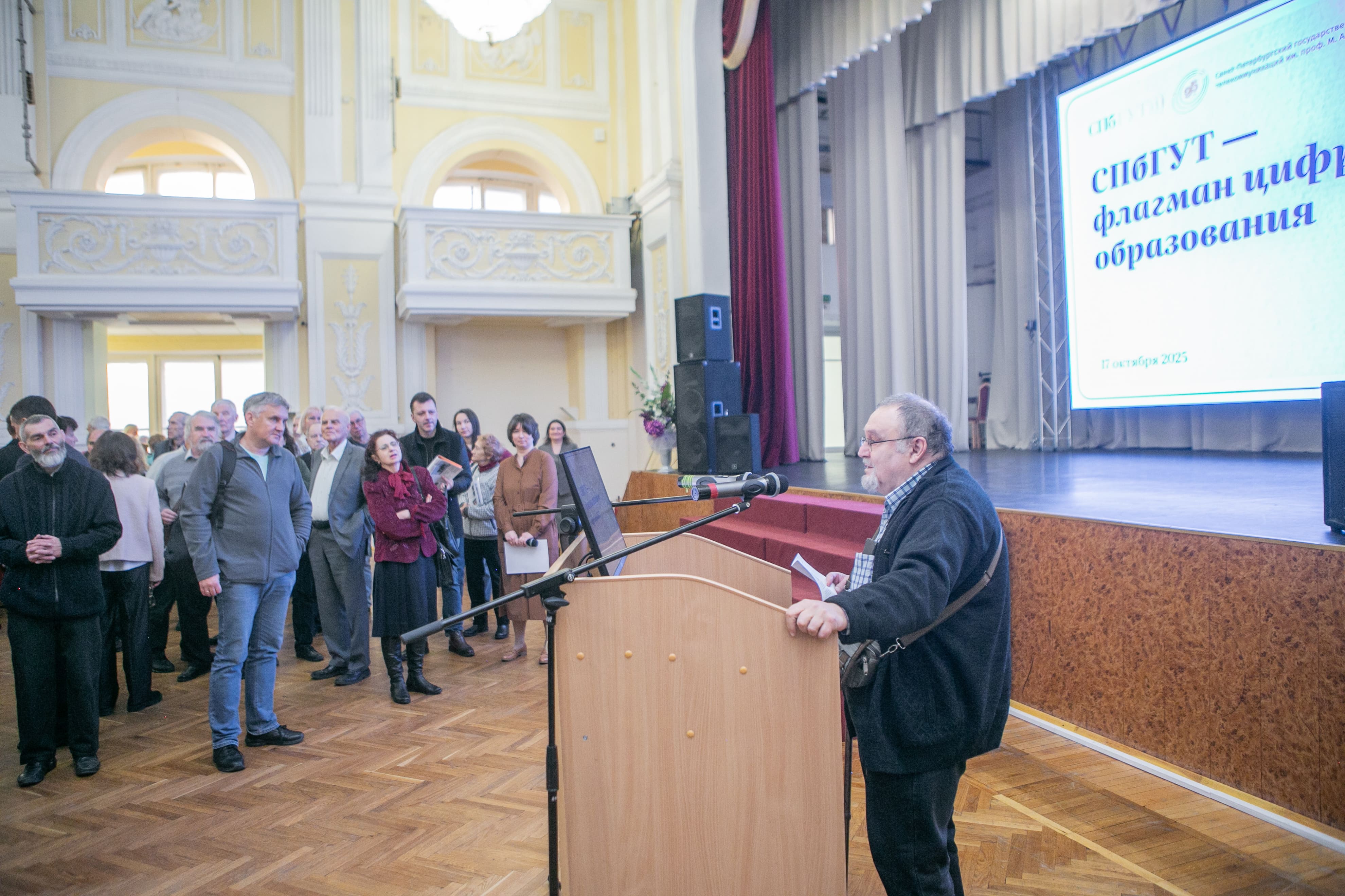 17 октября в историческом здании Санкт-Петербургского университета телекоммуникаций на наб. р. Мойки, 61 состоялась встреча выпускников ЛЭИС-СПбГУТ разных лет выпуска. Мероприятие прошло в финальный день программы юбилейных мероприятий в честь 95-летия СПбГУТ.