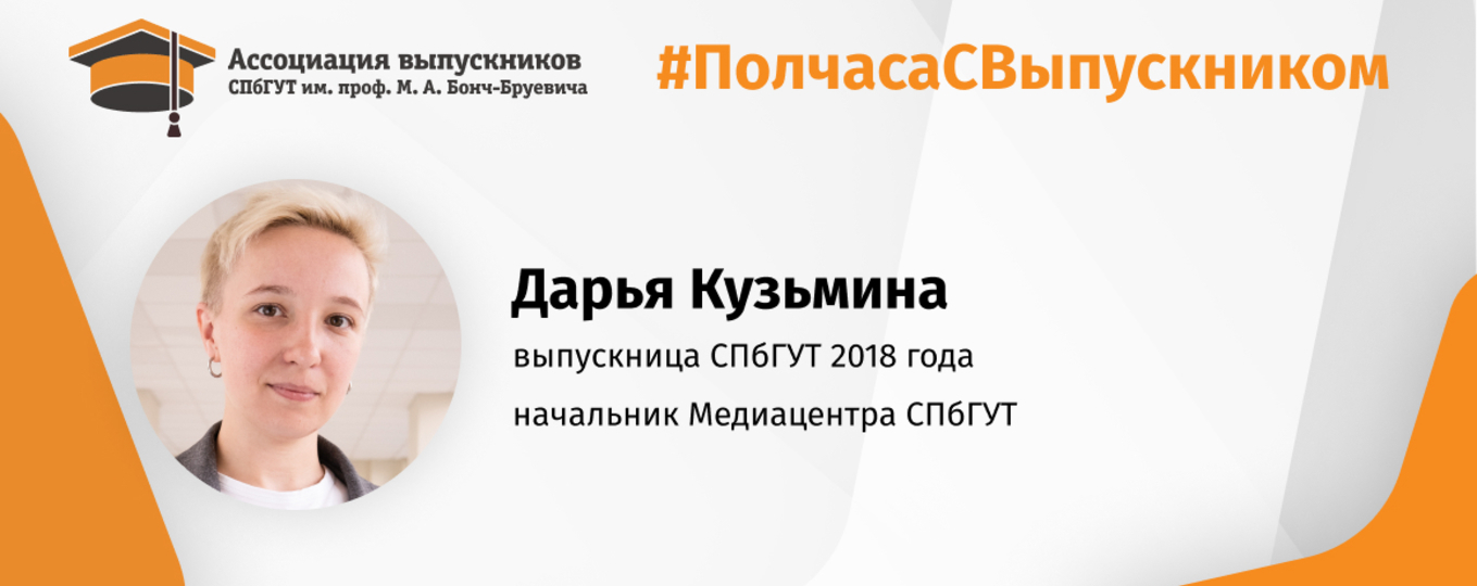 В интервью для проекта «Полчаса с выпускником» Дарья рассказывает, как «Бонч» раскрыл ее таланты и способности, почему она не верит фразе «я не успеваю» (и верит в магию съемки и монтажа) и что делать студенту, который мечтает работать в видеопродакшне. Ответ – быть как Даша!