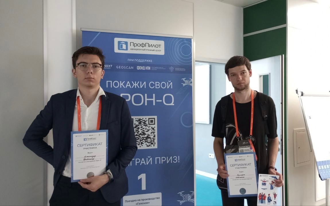 Сотрудники Центра перспективных проектов и разработок – техник лаборатории перспективных исследований Александр Гребенюк и техник лаборатории робототехники и беспилотных систем Тимофей Любащенко – представили университет на соревнованиях по мастерству управления и применения беспилотников. Коллеги прошли тест на профпригодность оператора БПЛА, приняли участие в хакатоканах, фиджитал-играх и других состязаниях с применением дронов, получили сертификаты о прохождении всех испытаний и заняли 2 место на соревнованиях по сбросу груза с коптеров.