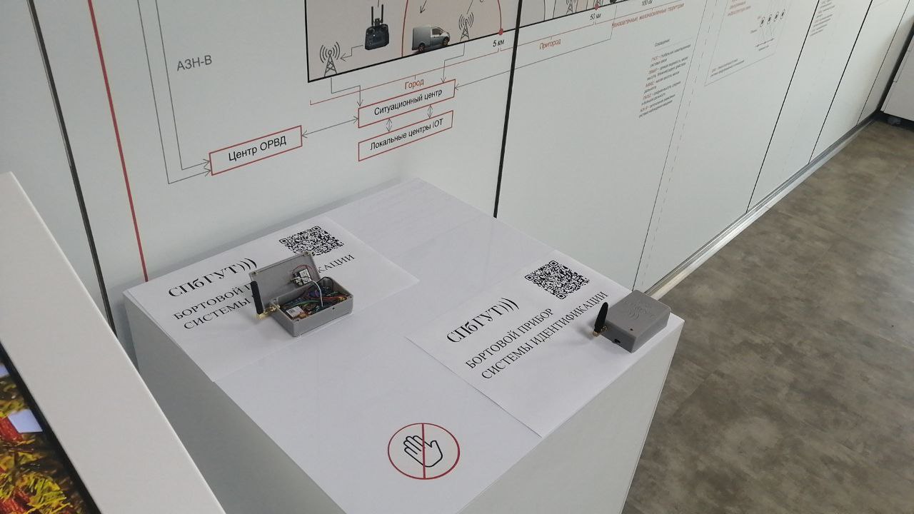 Санкт-Петербургский университет телекоммуникаций представляют ректор Руслан Киричёк и проректор по проектной деятельности Евгений Гетц. Коллеги представляют сообществу разработку СПбГУТ – бортовой прибор системы идентификации (БПСИ), способный идентифицировать и отслеживать беспилотные авиационные системы.
