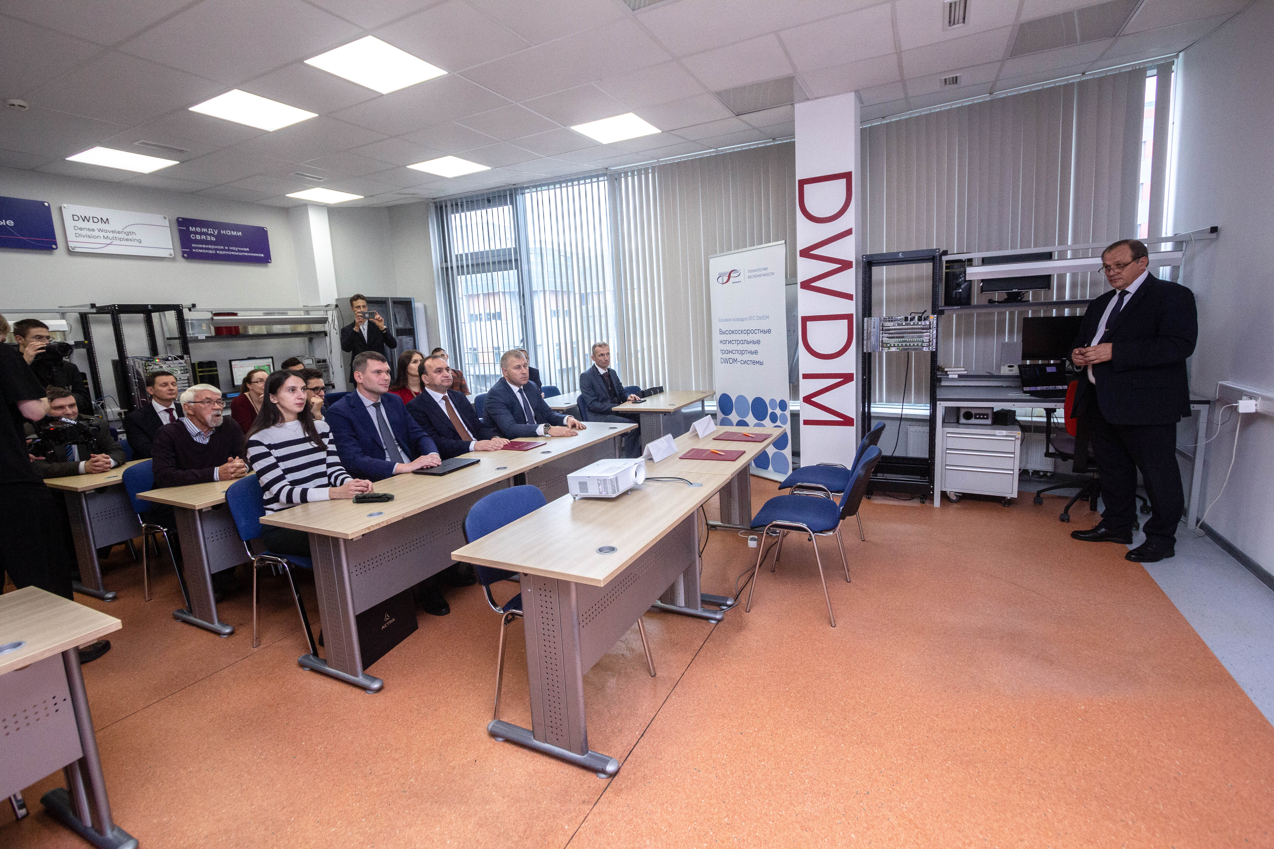 15 октября в Санкт-Петербургском университете телекоммуникаций была введена в работу новая лаборатория базовой кафедры «Высокоскоростные магистральные транспортные DWDM-системы» (ВТС-DWDM) компании Т8. Открытие состоялось в рамках программы юбилейных мероприятий СПбГУТ.
