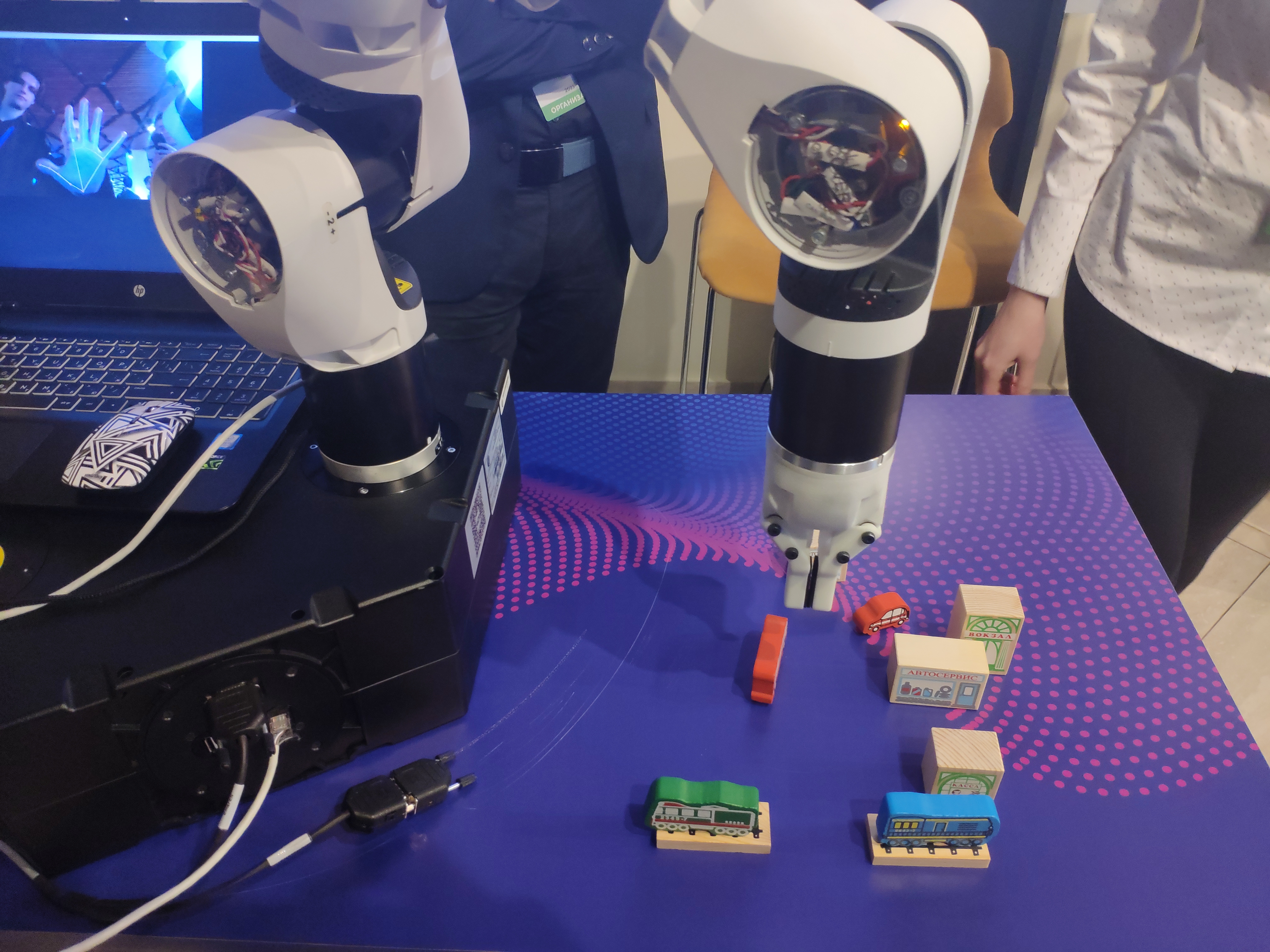 Еще одним экспонатом стала роботизированная рука, способная распознавать жесты по контрольным точкам. Разработчики поделились, что жесты загружались в программу с помощью искусственного интеллекта, была обучена нейронная модель.