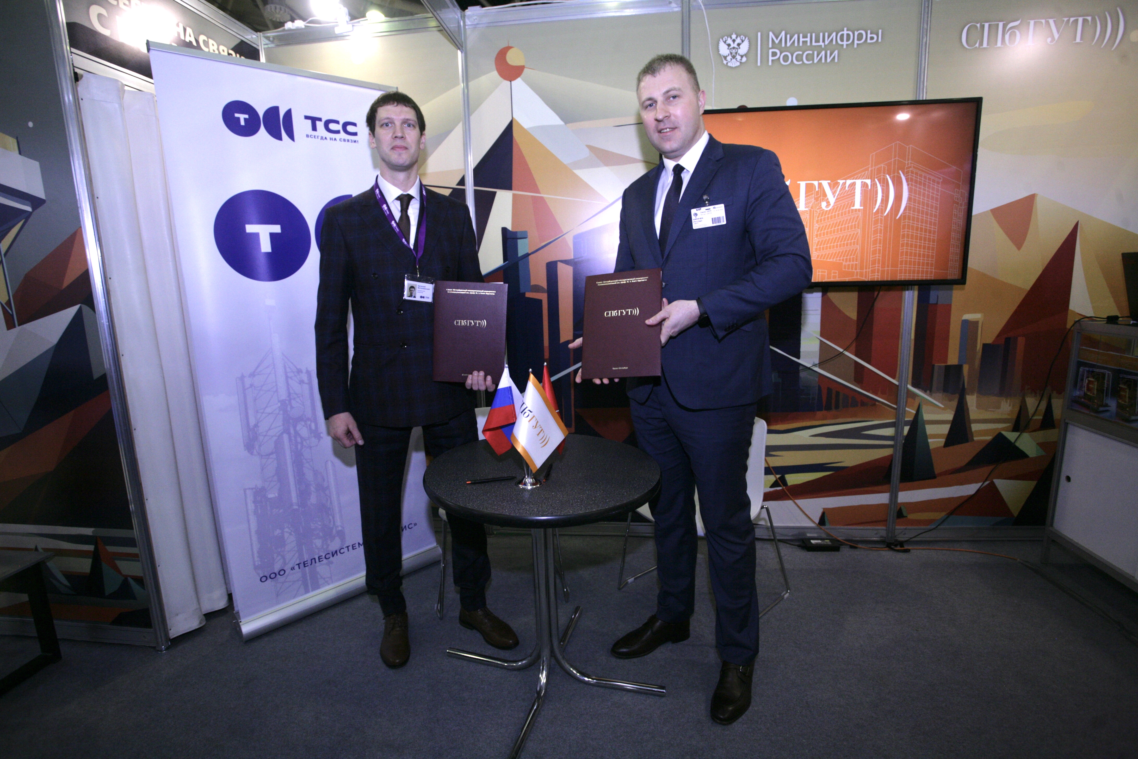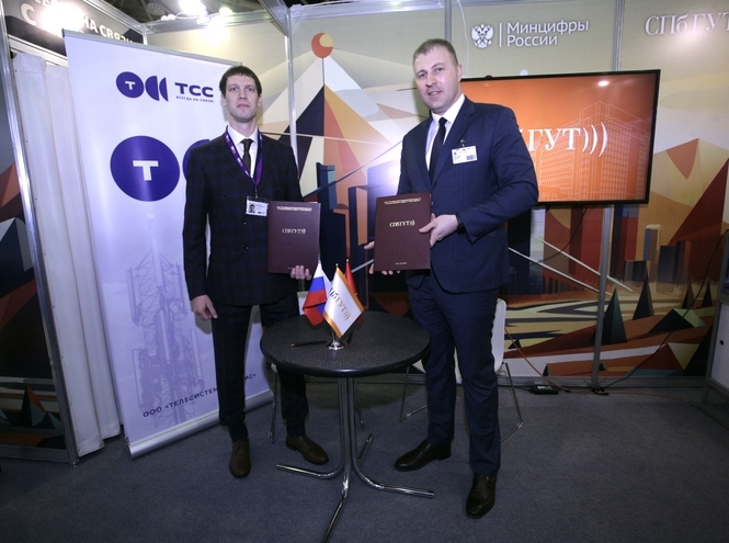 Кроме того, СПбГУТ подписал соглашение с компанией «ТелеСистемы Сервис», которое позволит развивать работу в области образования, науки, телекоммуникаций и ИТ. Документ подписали ректор университета Руслан Киричёк и генеральный директор компании Евгений Вотолевский.