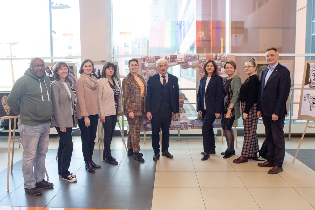 Вторник был также наполнен культурно-образовательными мероприятиями. Утром состоялось торжественное открытие двух выставок – декоративно-прикладного искусства «Африка. Магия континента» и графических работ студентов факультета ИСиТ и Института магистратуры.