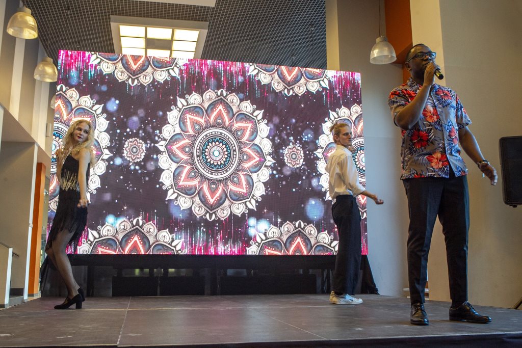 Концертная программа порадовала всех яркими номерами талантливых студентов, в постановке которых помогали разные структурные подразделения университета, а также отличным дебютом российских студентов в качестве ведущих.