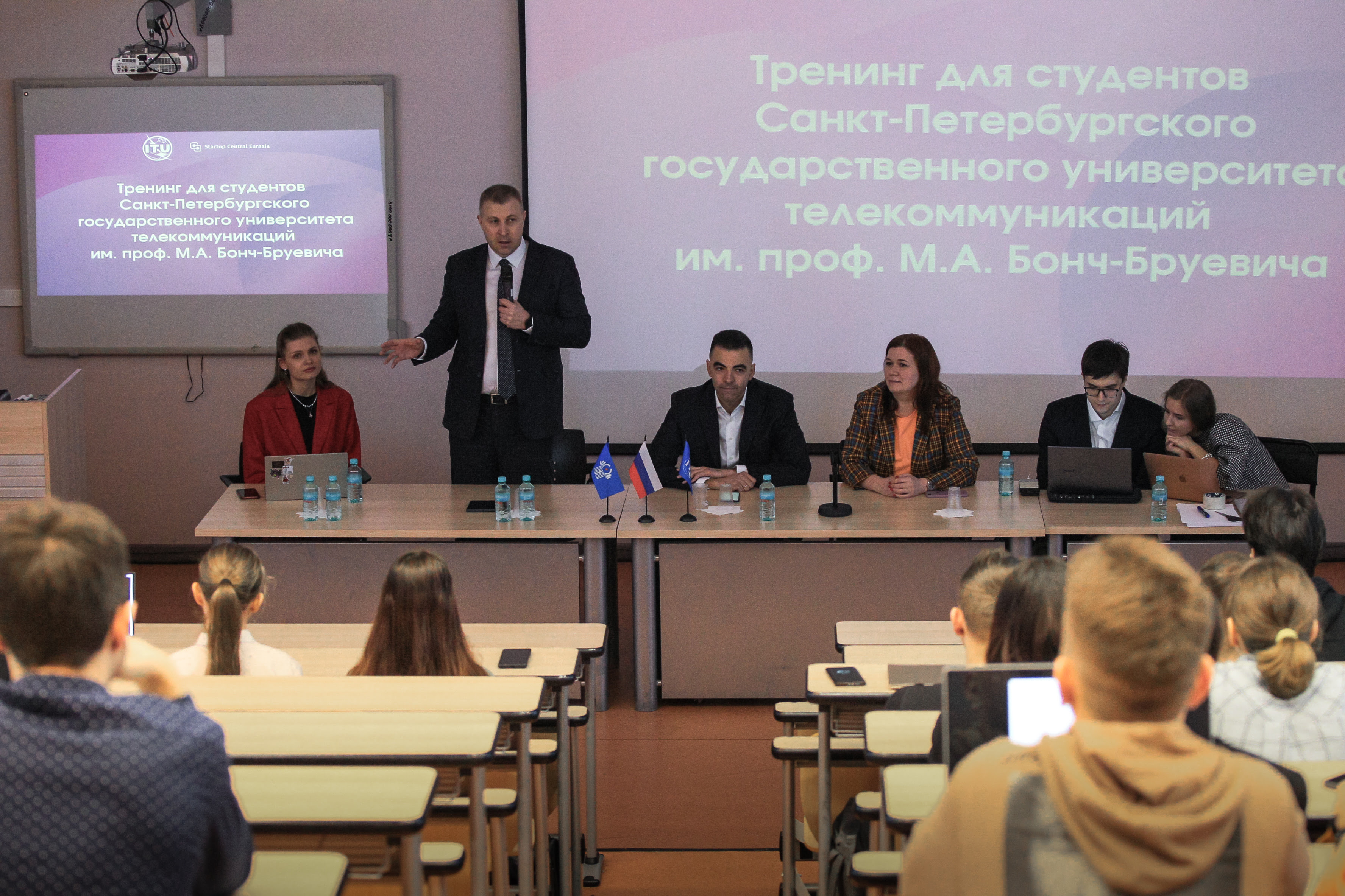 30 и 31 марта эксперты Регионального отделения Международного союза электросвязи для Региона стран СНГ провели тренинги по развитию экосистемы телеком-стартапов для студентов и преподавателей СПбГУТ. Участниками встреч стали более 100 человек с разных факультетов.