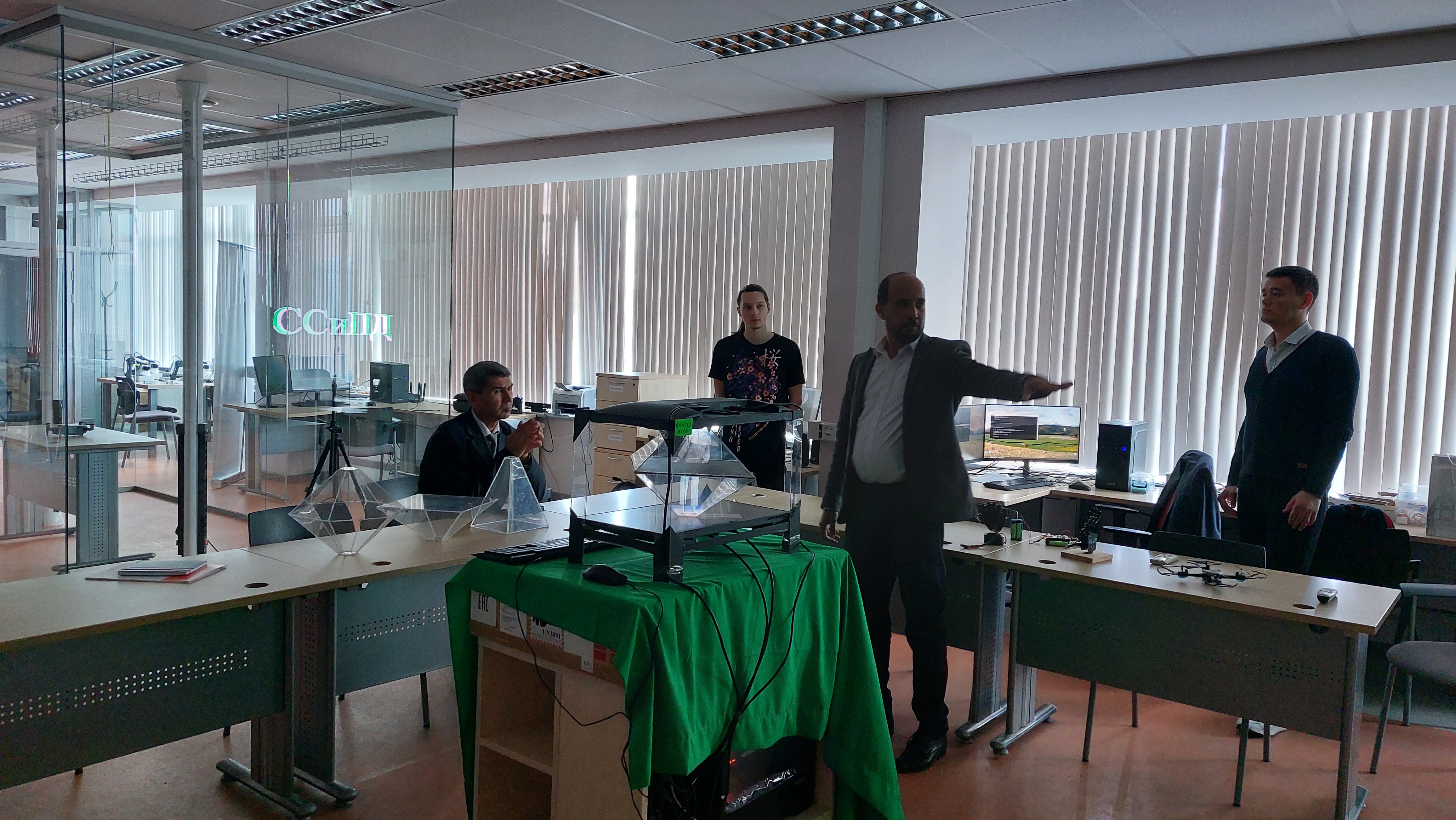 В лаборатории кафедры программной инженерии и вычислительной техники Игорь Карташевский, заведующий кафедрой, представил роботизированный учебный макет и программы симуляции для работы с ним. Затем Мирзаоли Худойберганов посетил лабораторию кафедры фотоники и линий связи, где проходило учебное занятие.