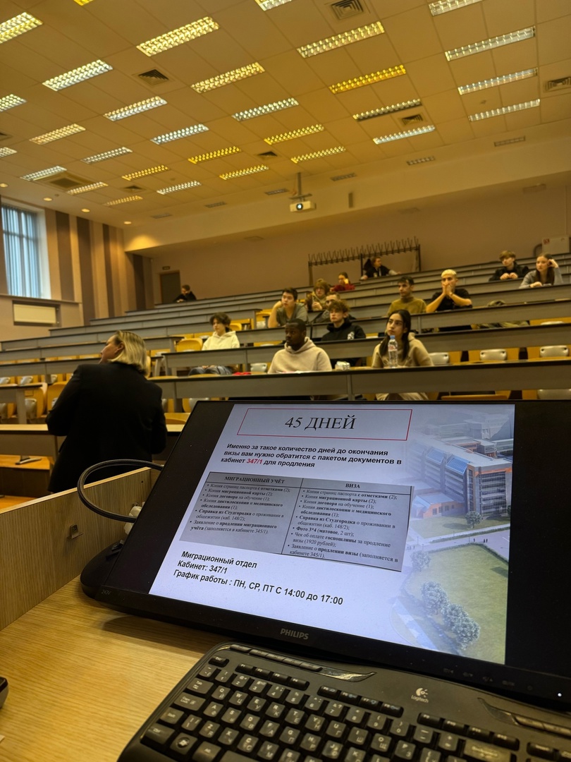 На встрече студентам напомнили о ключевых правилах пребывания на территории Российской Федерации и подняли вопросы, связанные с обучением и проживанием.