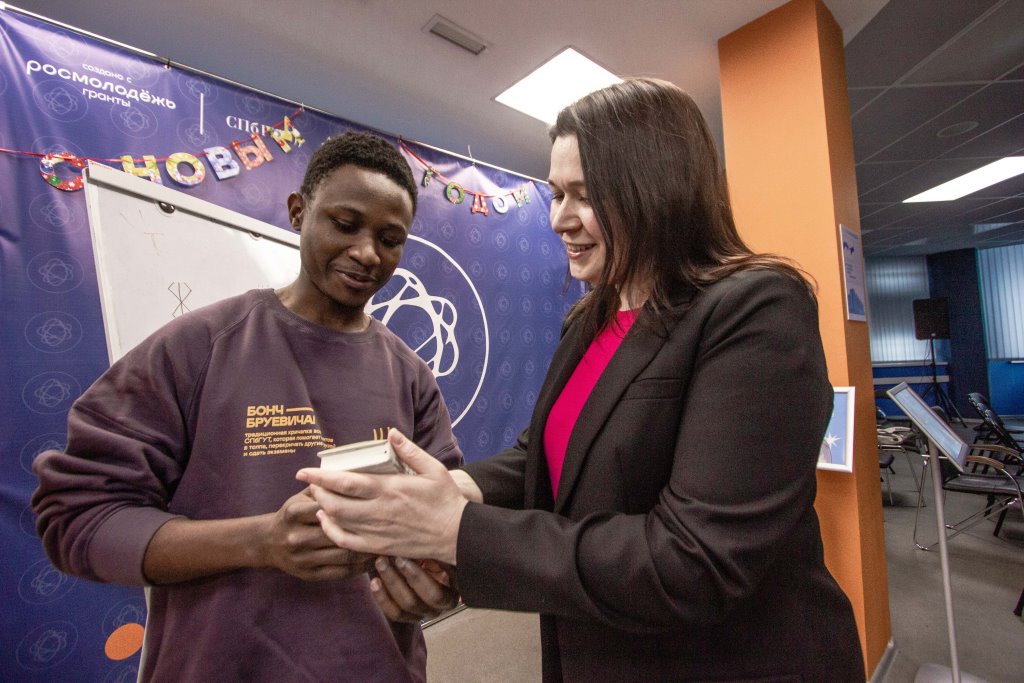 Нина Николаевна вручила подарки студентам, сумевшим ответить на вопросы о Петербурге, и отметила хорошую организацию и дружелюбную атмосферу.