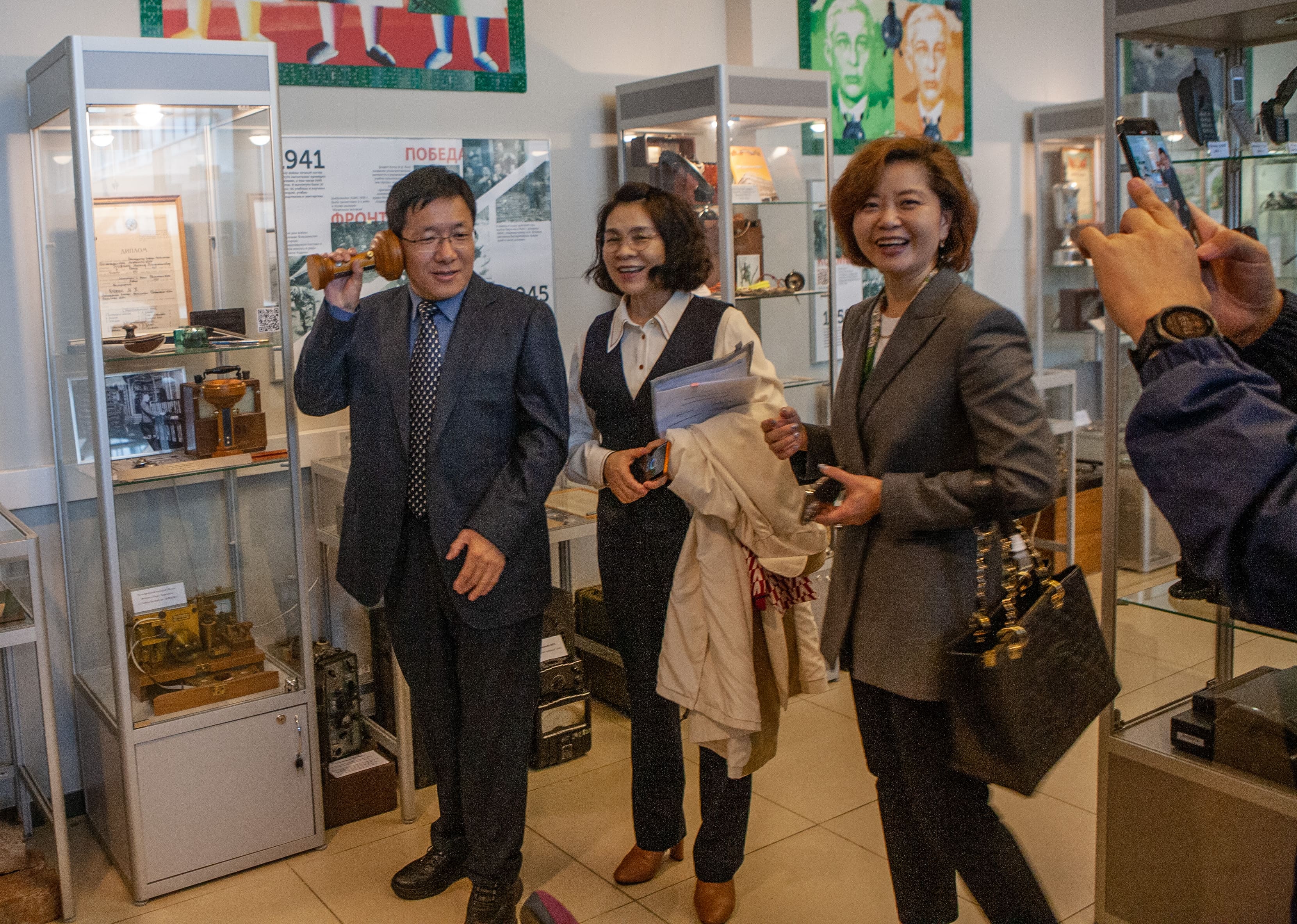 Встреча началась с посещения экскурсии в КПЦ «Музей СПбГУТ», где начальник центра Сабина Дерипаско рассказала об истории университета. Далее коллеги обменялись информацией о своих вузах и направлениях образовательной деятельности.