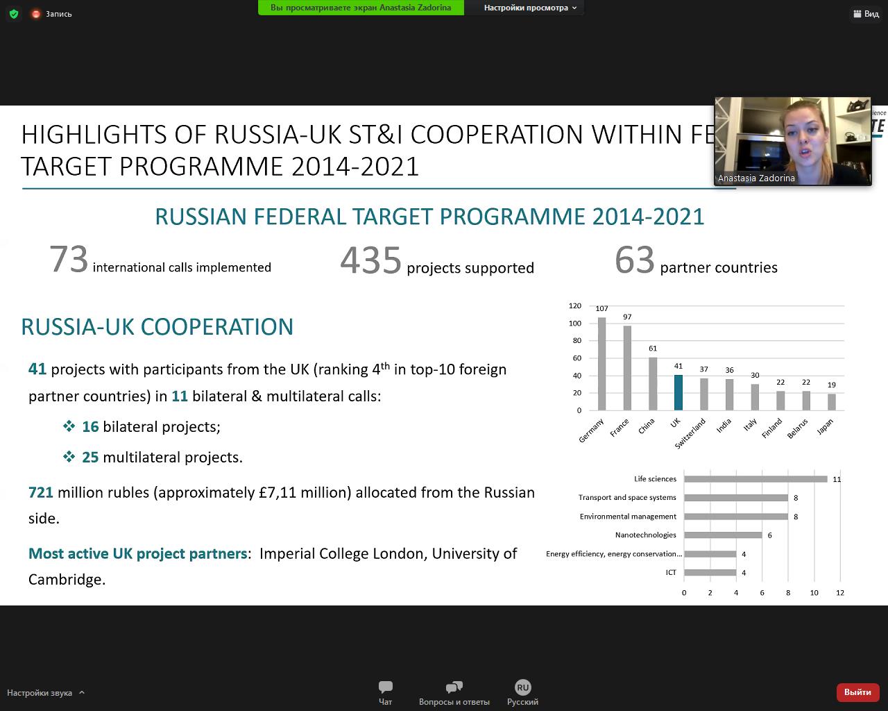 На мероприятии обсудили возможности финансирования совместной российско-британской научно-исследовательской деятельности. Коллеги из Великобритании проявляют большой интерес к сотрудничеству с учеными из России не только в научно-технической сфере, но и в гуманитарной. Сейчас Великобритания активно привлекает частные инвестиции на проведение научно-технических исследований, в том числе с другими странами. Были озвучены основные источники государственного финансирования исследований и инноваций: в Великобритании – это UK Research and Innovation, в Российской Федерации – Российский фонд фундаментальных исследований (РФФИ). Кроме того, участники форума поделились опытом работы в российско-британских проектах и рассказали о положительных результатах.