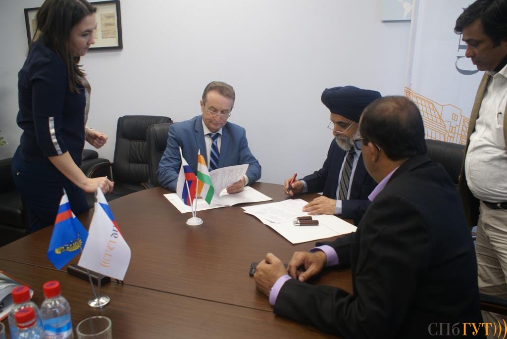 Гостей принимали и.о. ректора Г.М. Машков и начальник отдела международного сотрудничества И.И. Каримова. В ходе встречи обсуждались вопросы сотрудничества в области академического обмена и совместных научных исследований. Коллеги из Индии посетили НОЦ «Технологии информационных и образовательных систем» и НОЦ «Медиацентр», где руководители центров В.С. Усс и Г.Г. Рогозинский рассказали об учебной и научной работе, которая проводится под их руководством совместно со студентами. В завершение встречи между СПбГУТ и университетом RIMT был подписан договор о сотрудничестве в сфере образования и науки.