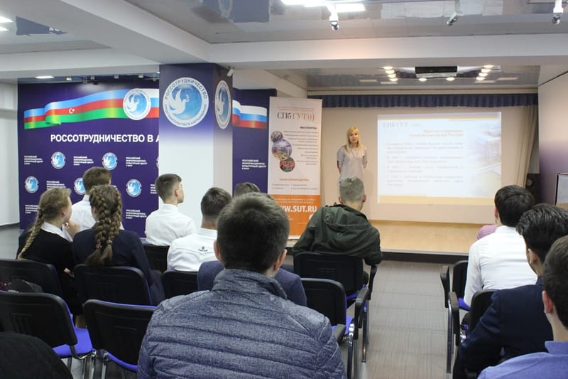Так, 30 марта в представительстве Россотрудничества в Азербайджане (в Российском информационно-культурном центре г. Баку) состоялась презентация образовательных программ СПбГУТ. Перед учащимися бакинских школ, студентами азербайджанских вузов и их родителями выступила ведущий специалист отдела международного сотрудничества СПбГУТ Татьяна Николаевна Петровец. Участники встречи получили подробную информацию об образовательных программах вуза, условиях поступления и обучения, а также о студенческой жизни в Санкт-Петербурге.