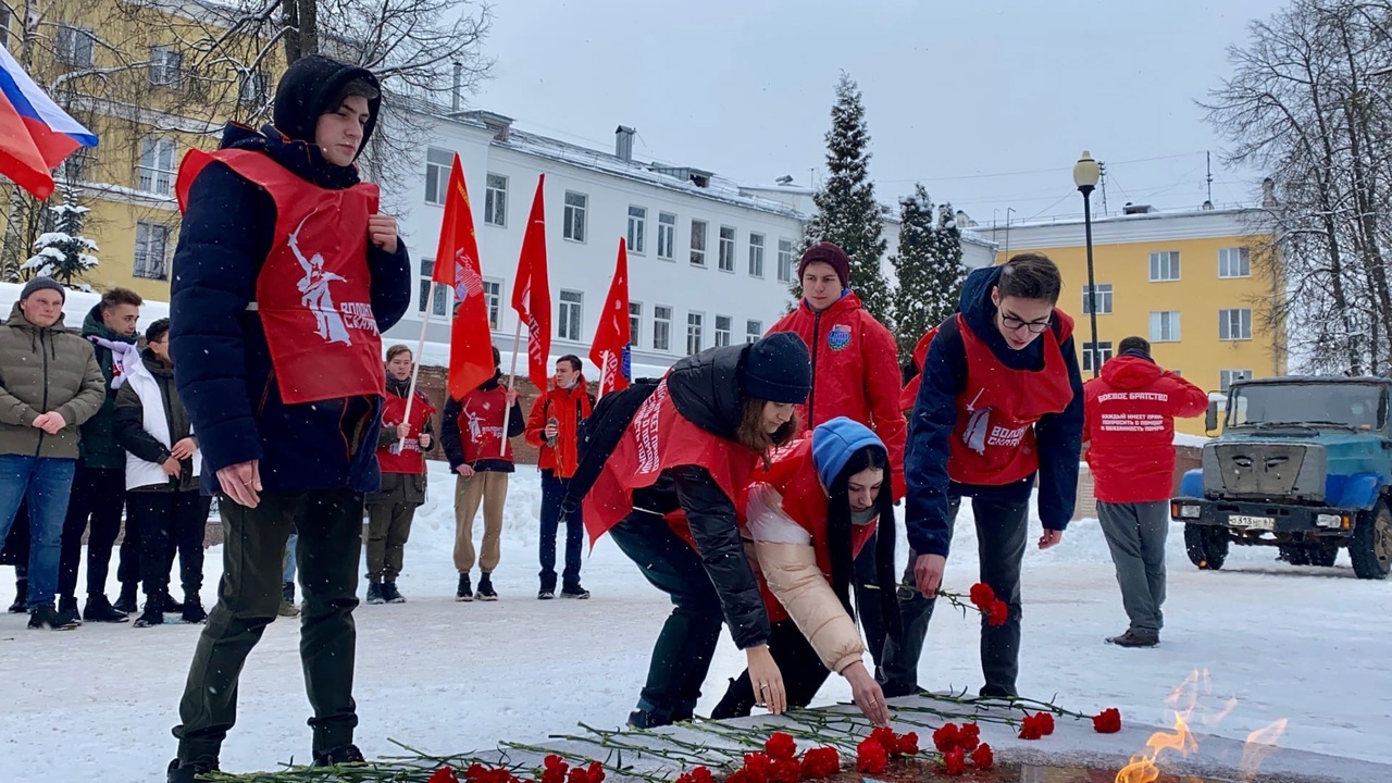 Волонтеры почтили память павших воинов, защитников Сталинграда минутой молчания и возложили цветы к Вечному огню.