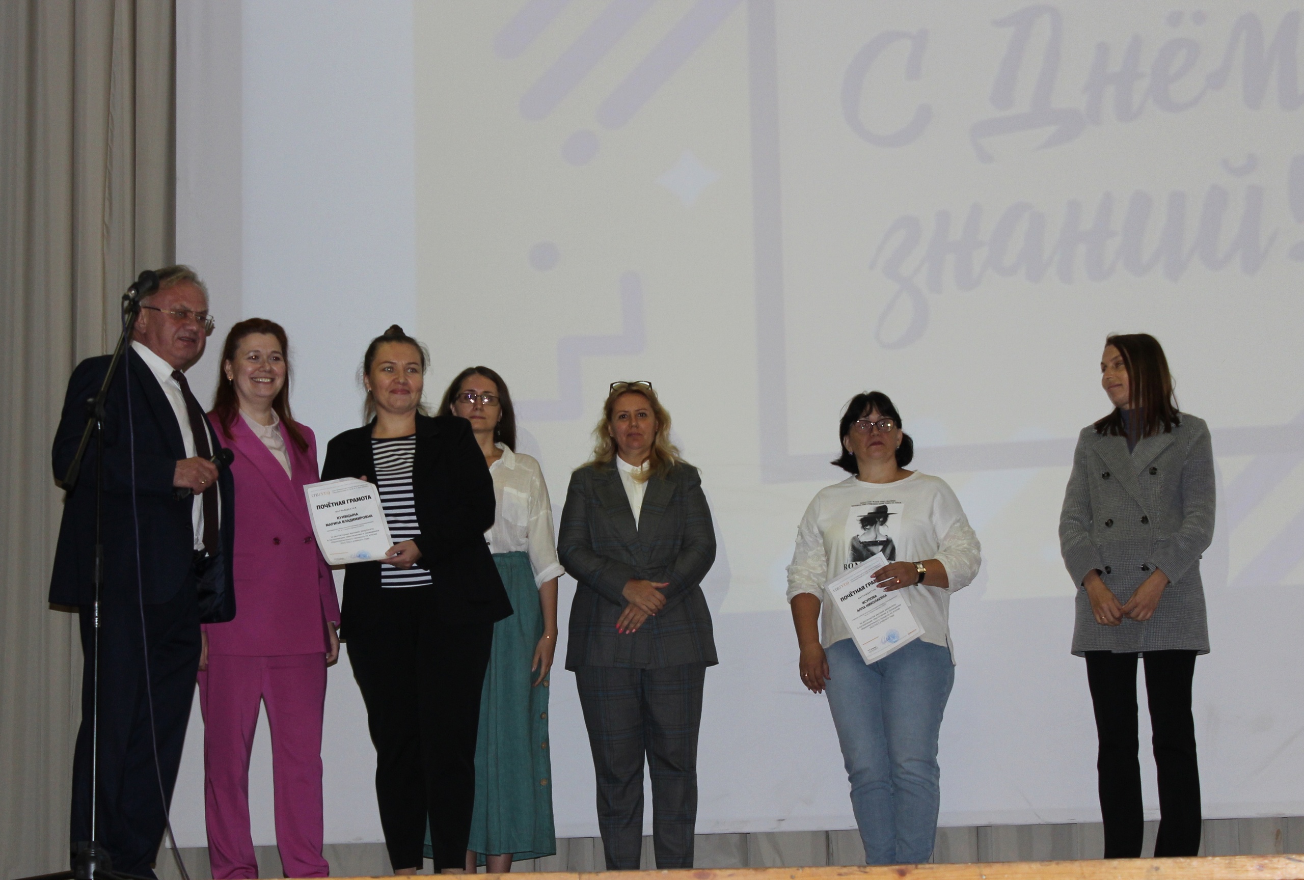 Проректор по молодежной политике и международному сотрудничеству Санкт-Петербургского университета телекоммуникаций Нина Журавлёва поздравила первокурсников, а также вручила награды наставникам студентов в честь Года педагога и наставника. За высокие результаты в организации, обеспечении и проведении образовательного процесса по итогам 2022–2023 учебного года Почетные грамоты СПбГУТ получили сотрудники колледжа Алла Исупова, Марина Куницына, Юлия Солодкая. Лучшим преподавателем колледжа признана Юлия Маломан, ценного подарка удостоена Светлана Лукина.