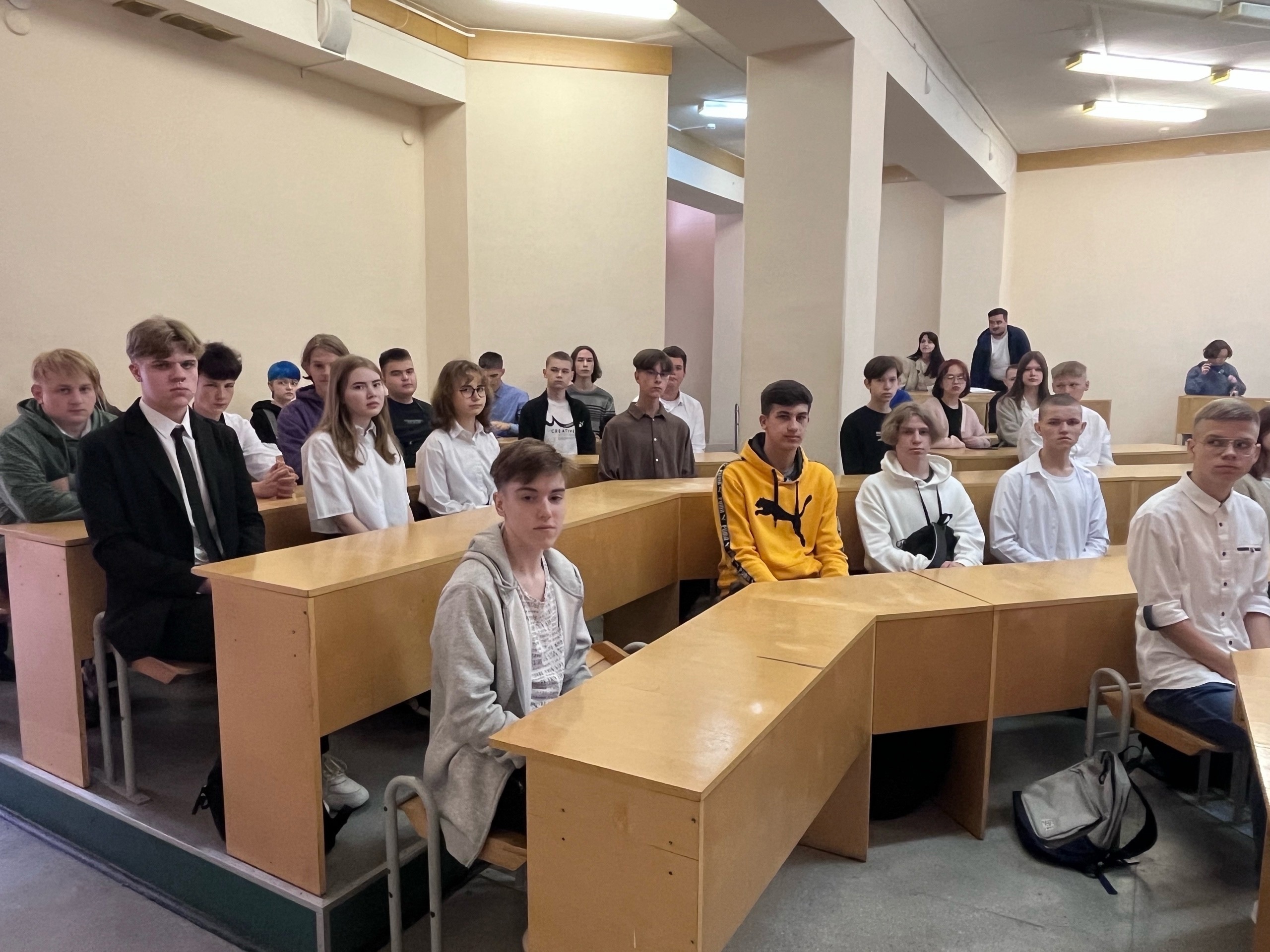 Заместитель директора филиала Российской телевизионной радиовещательной сети Архангельского ОРТПЦ Иван Скоробогатько оценил полный зал первокурсников и не сдержал слов восторга. Он напомнил, что 90% сотрудников его компании – выпускники Архангельского колледжа телекоммуникаций.