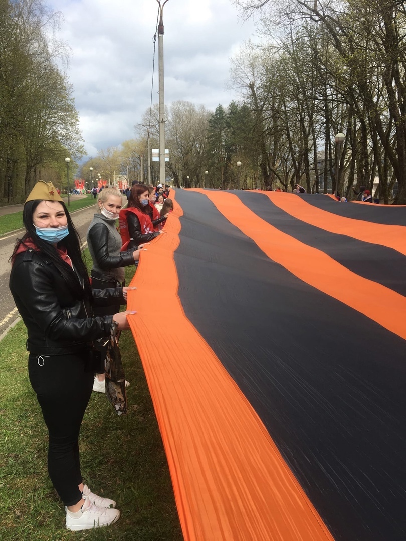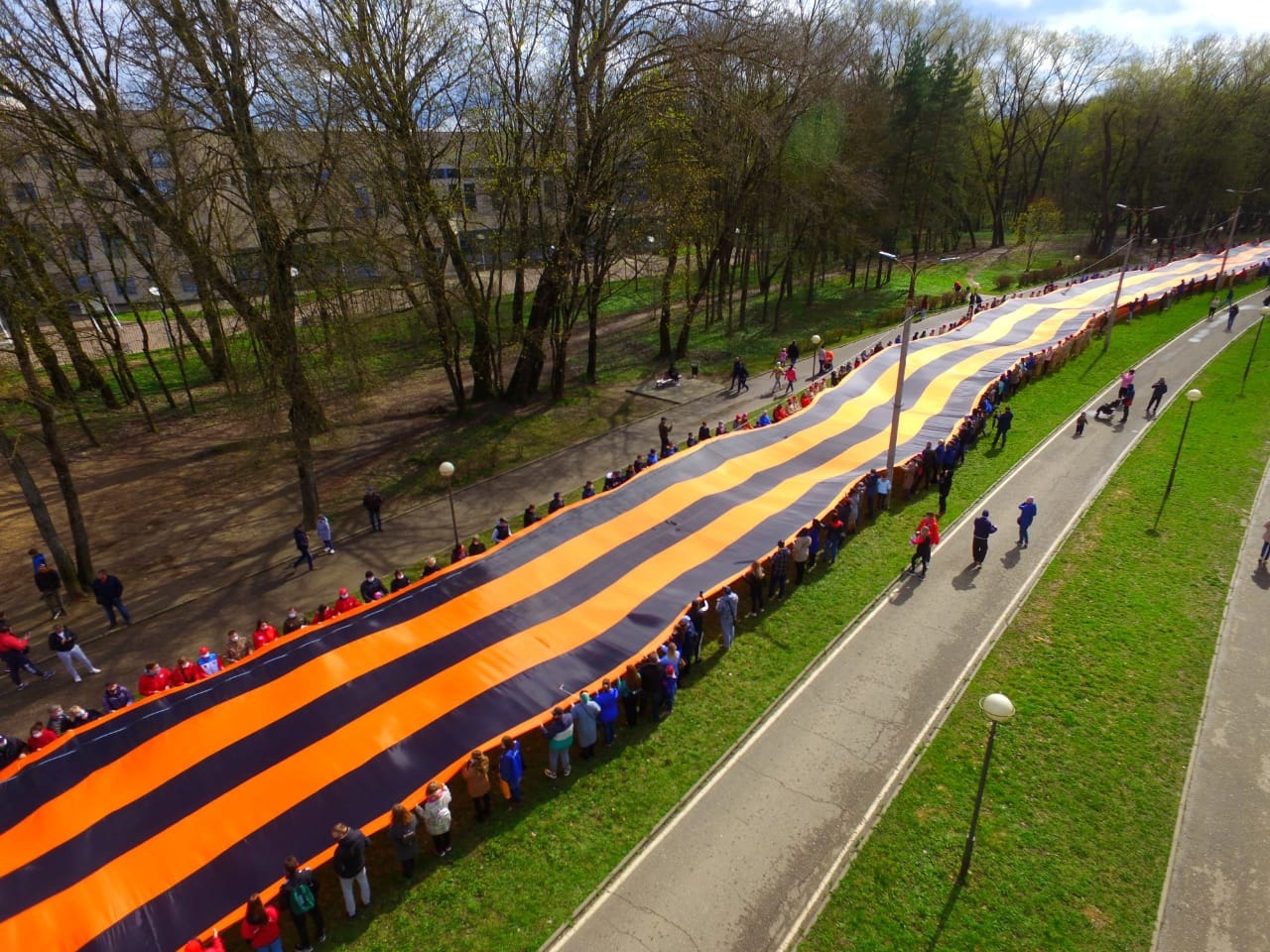 На аллее, ведущей к Кургану Бессмертия, активисты и волонтеры общественных организаций Смоленска и Смоленской области развернули самую большую Георгиевскую Ленту в Мире: 300 м в длину, 7 м в ширину и общей площадью в 2000 квадратных метров.