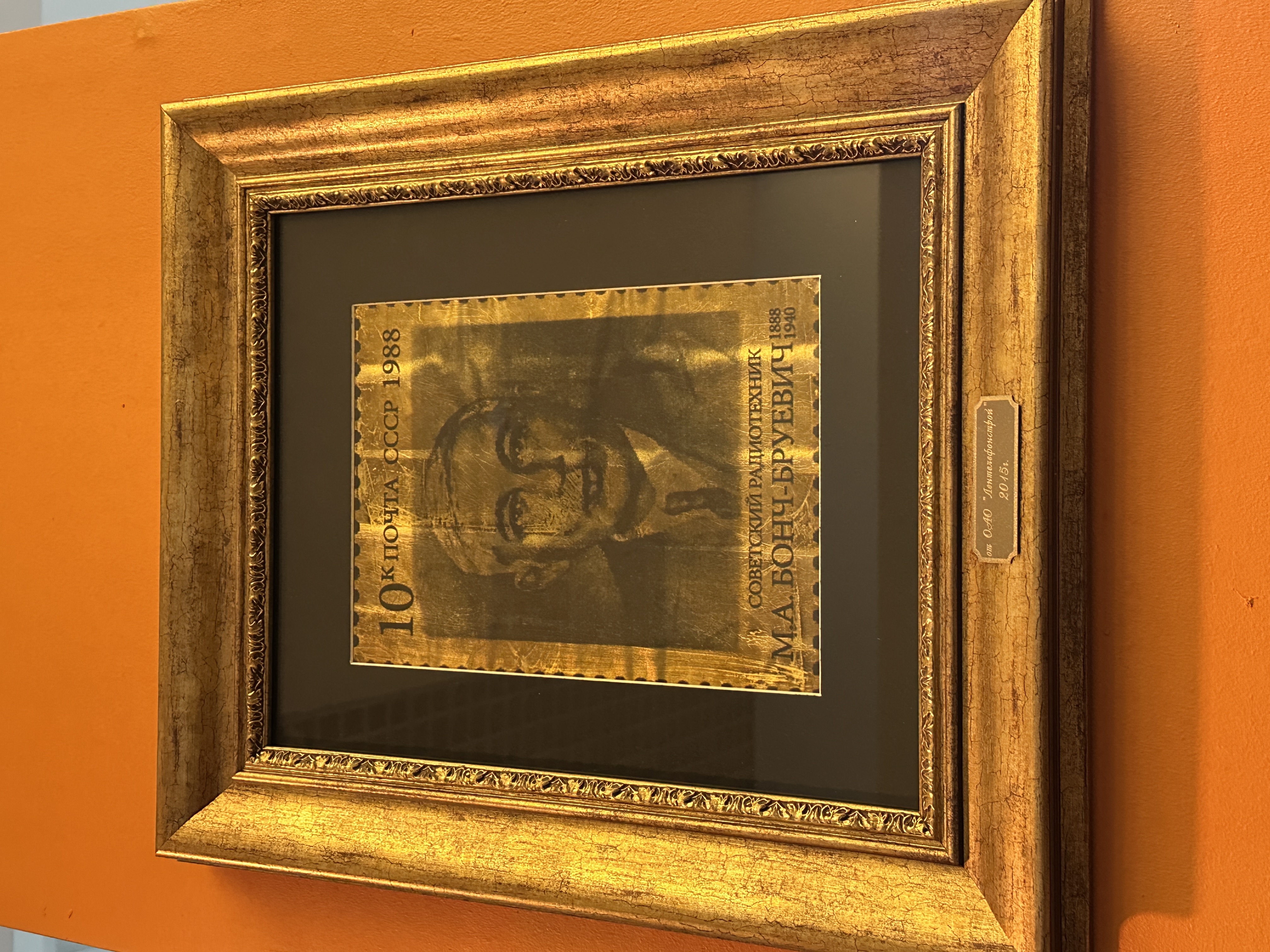 В КПЦ «Музей СПбГУТ» хранится увеличенная копия юбилейной марки, выполненная из сусального золота. Посетителям предоставляется возможность увидеть этот экспонат воочию — сотрудники Музея с радостью покажут его и дополнят знакомство рассказом о других ценных экспонатах.
