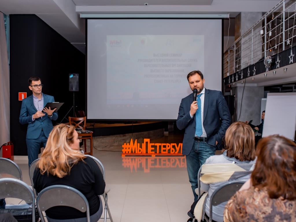 С 3 по 4 декабря состоялся выездной семинар руководителей воспитательных служб образовательных организаций Санкт-Петербурга. В рабочей встрече также приняли участие члены Студенческого совета Санкт-Петербурга и Молодежной коллегии.