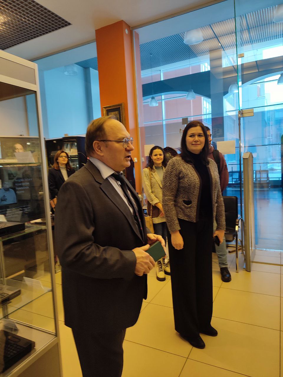 Представители БГУ и студенты СПбГУТ побывали в культурно-просветительском центре «Музей СПбГУТ» – экскурсию провела директор КПЦ Сабина Дерипаско. Затем они посетили университетскую лабораторию MEGANETLAB 6G.
