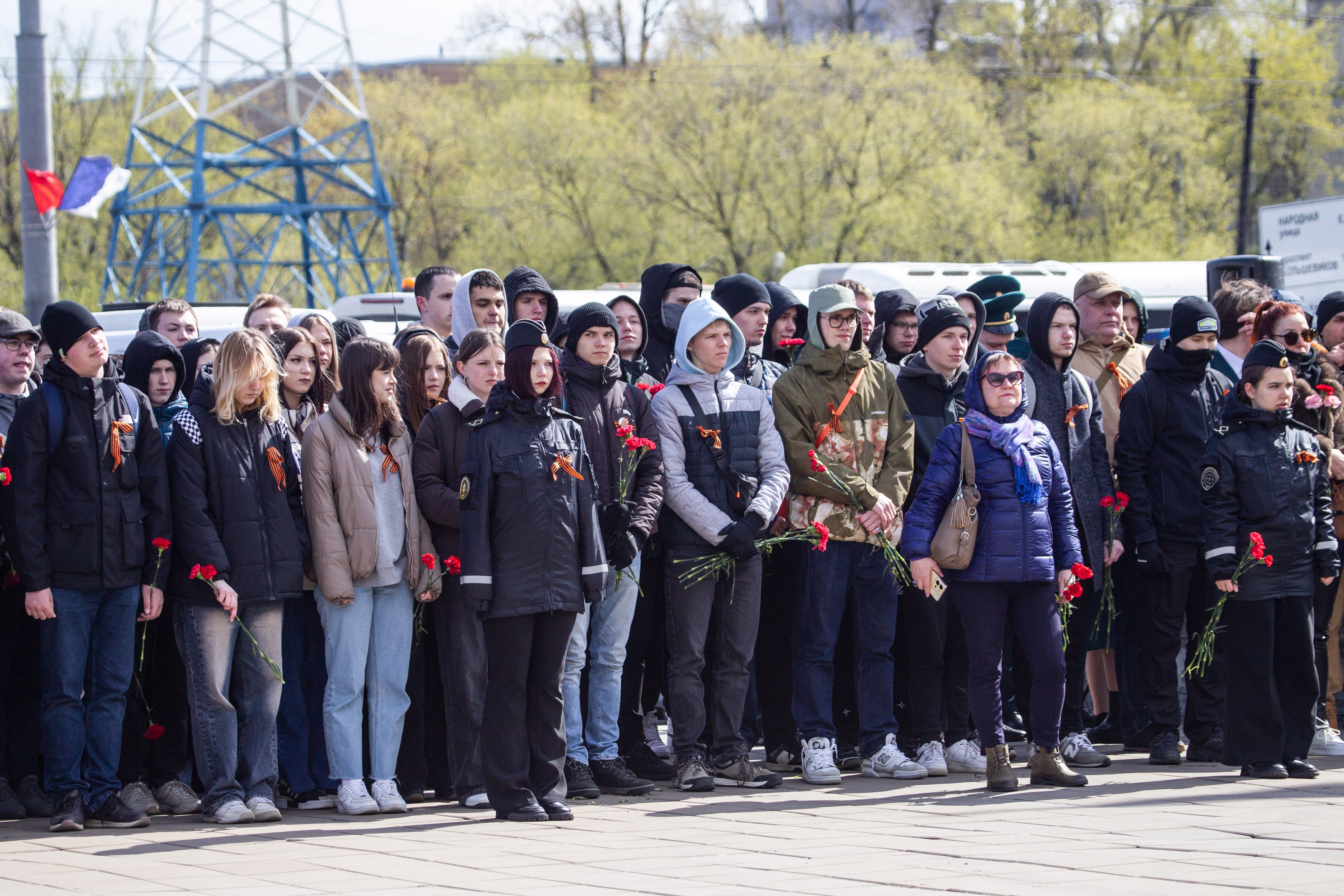 Студенты военного учебного центра и студенты факультета ИКСС, члены студенческого совета возложили цветы к братским могилам и обелиску. На обелиске начертаны слова, обращённые ко всем нынешним и будущим поколениям: «Память павших героев, защитников жизни, священна, будь достоин ее светлым подвигом жизни своей».