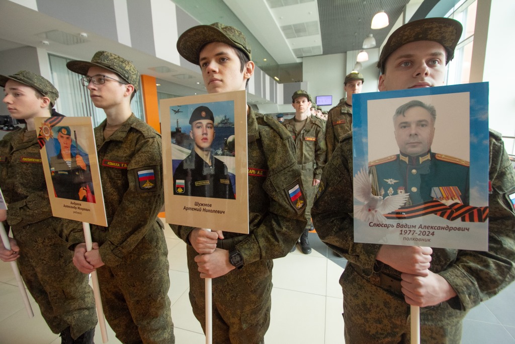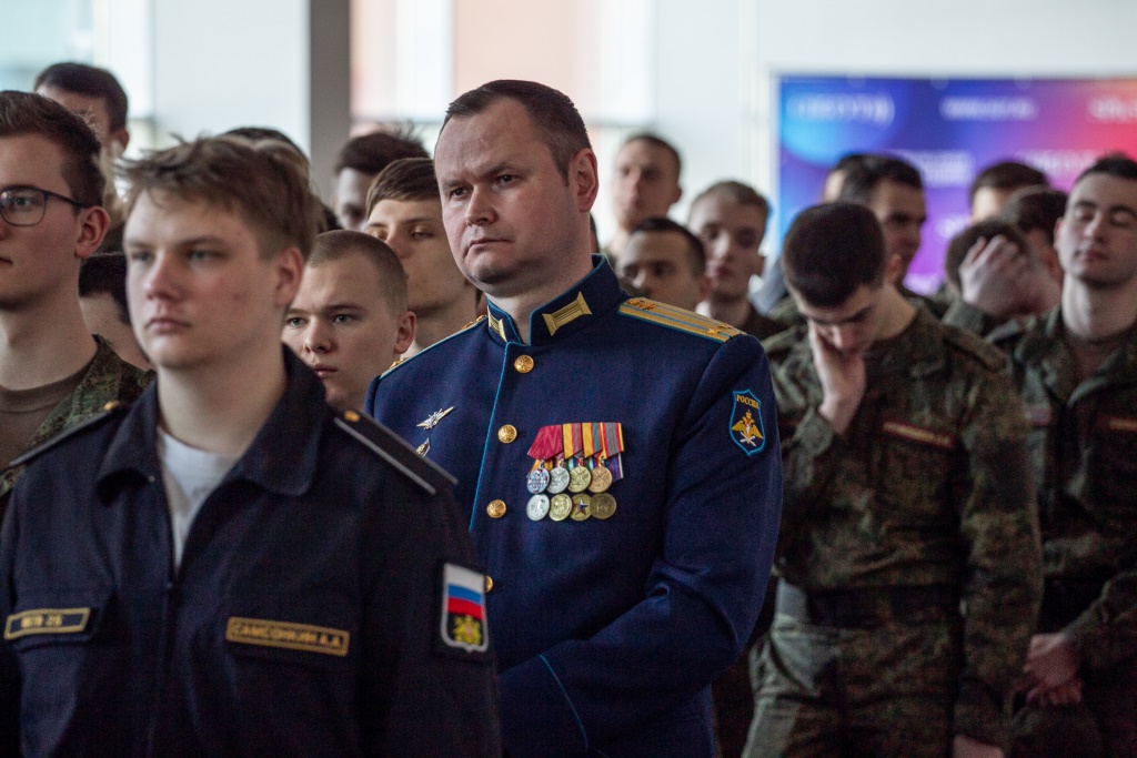 В едином строю прозвучали имена студентов и выпускника вуза, героически погибших в ходе специальной военной операции, – полковника Вадима Слюсаря (заместителя начальника ВУЦ), лейтенанта Юрия Житкевича (выпускника ВУЦ), рядового Александра Андреева (студента факультета РТС), рядового Артемия Шужмова (студента Архангельского колледжа телекоммуникаций).