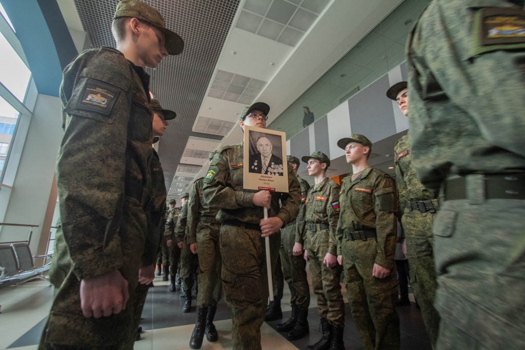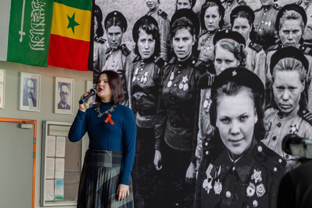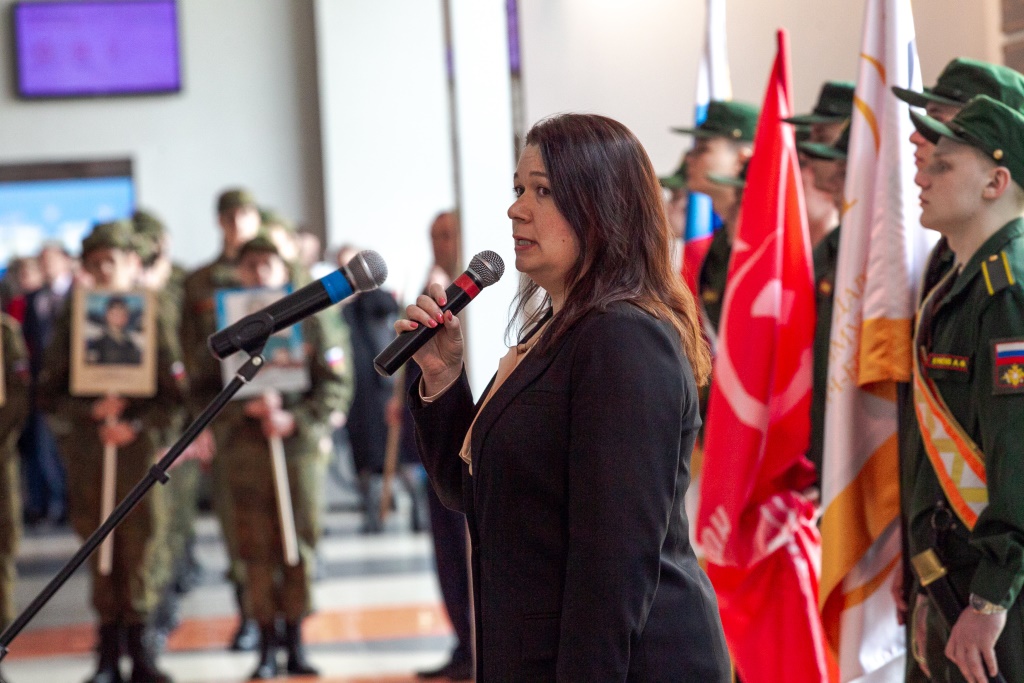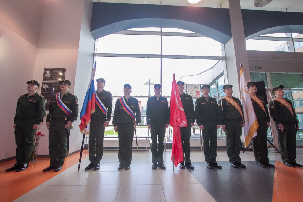 Под звуки государственного гимна знамённая группа военного учебного центра внесла флаги Российской Федерации и СПбГУТ, знамя Победы. На построении объявили имена героев Бессмертного полка нашего университета – участников Великой Отечественной войны и работников тыла.