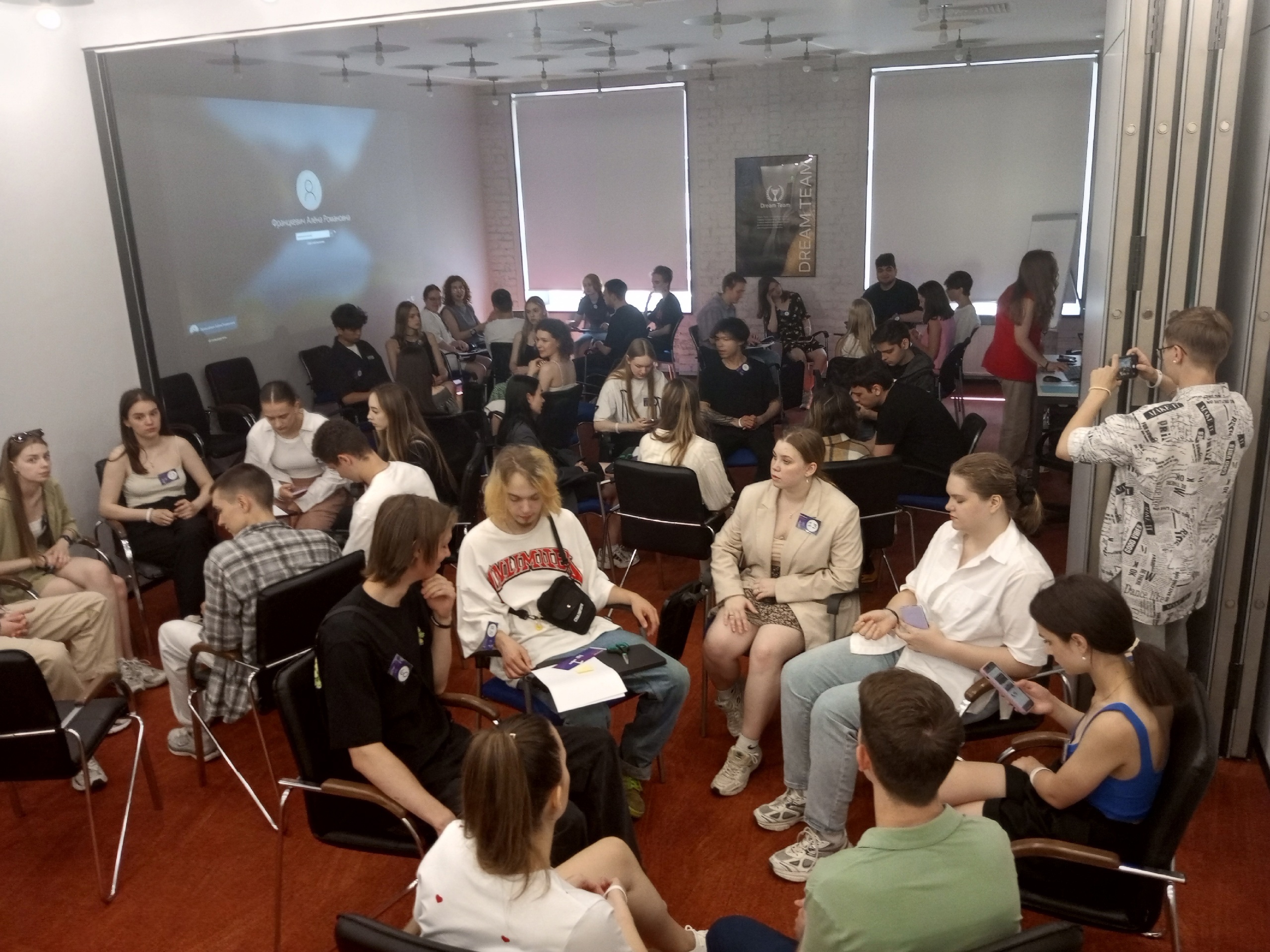 Студенты во время игры воспроизводили хлопками в ладоши движение радиоволн, участвовали в тренинге – создавали из бумаги снежинки и «продали» их клиентам, роль которых выполняли руководители разных направлений компаний.