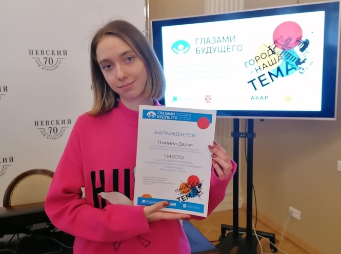 Наградил Дарью Пыпину руководитель пресс-службы комитета по благоустройству Санкт-Петербурга Сергей Касаткин. Он высоко оценил работу студентки СПбГУТ, торжественно вручил диплом и ценный приз.