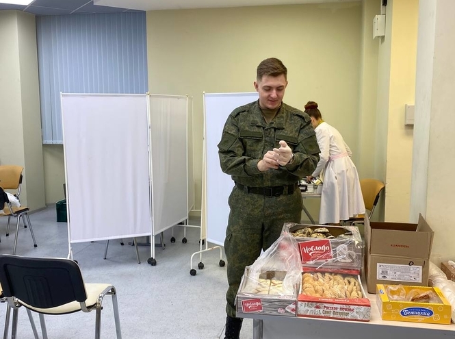 В этот раз работникам донорского пункта помогали волонтеры – студенты взводов ИКТВ-94 и ИКТВ-03 Военного учебного центра СПбГУТ.