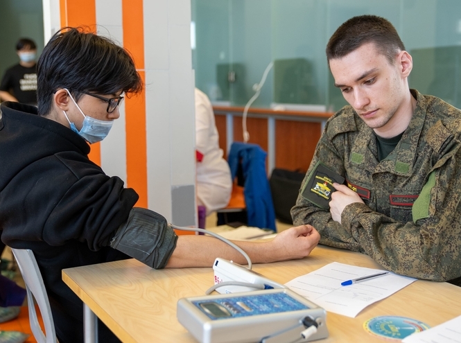 Помощь медицинским работникам пункта переливания и сотрудникам отдела по социальной работе оказали студенты военного учебного центра во главе с начальником кафедры общевоенной подготовки полковником Анатолием Новаком.